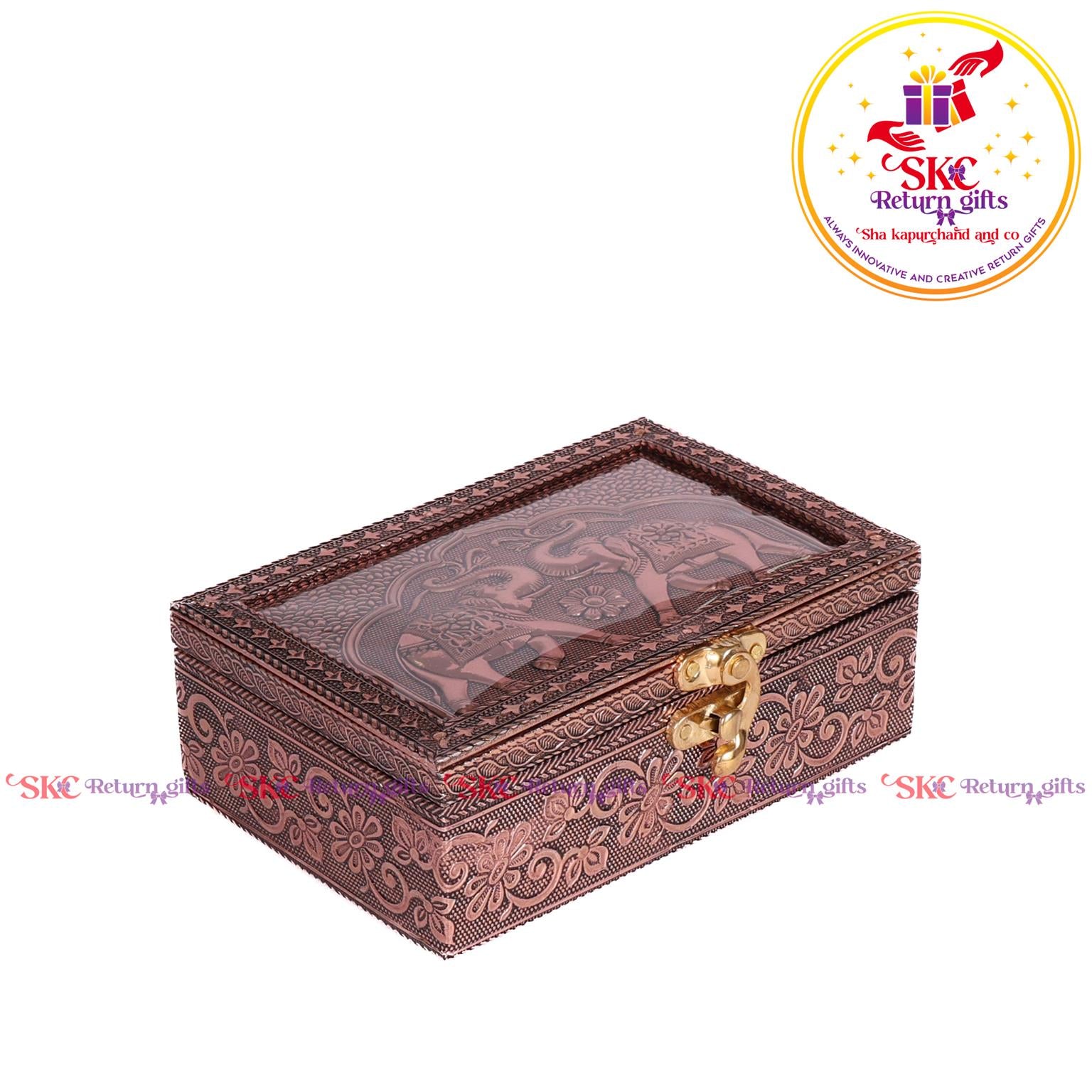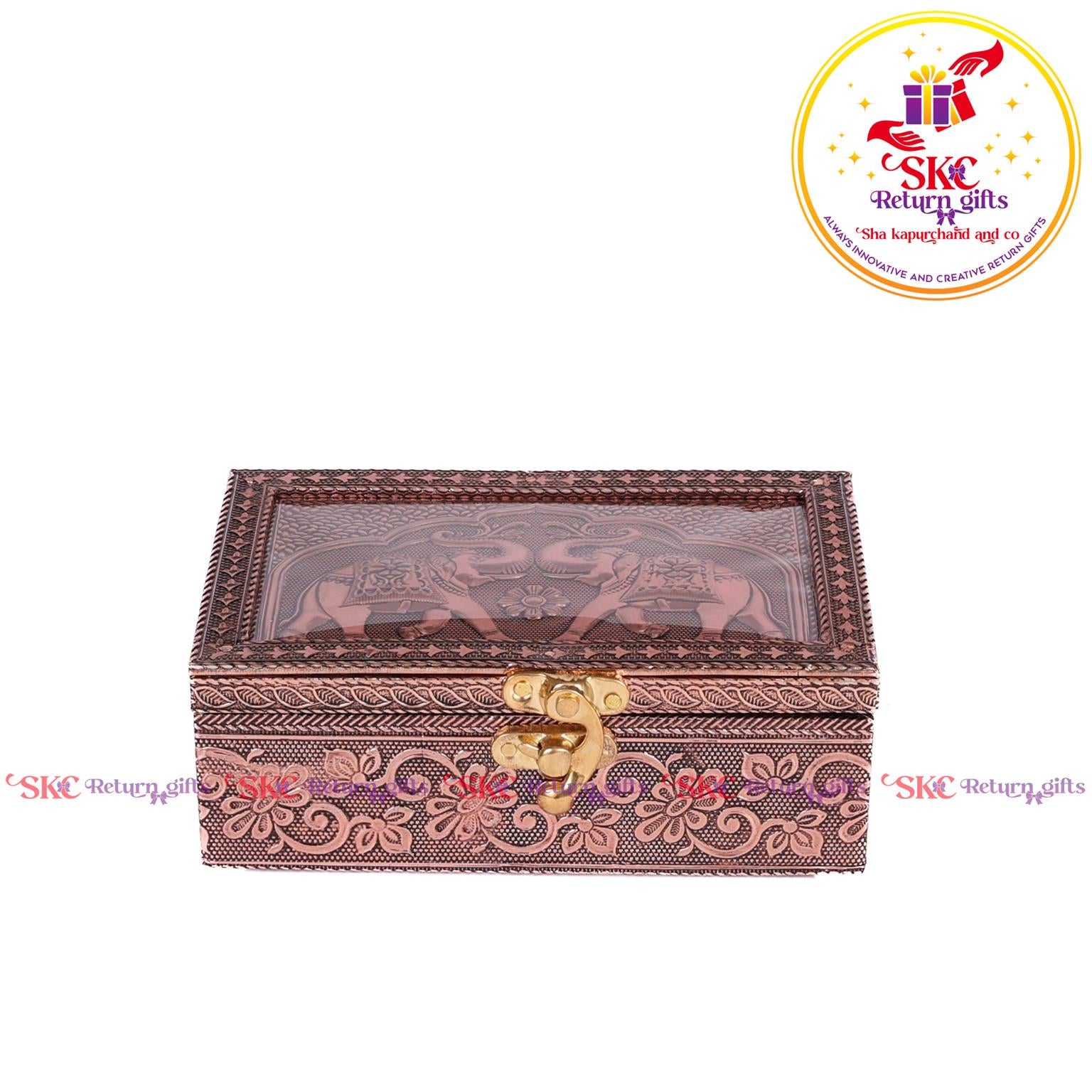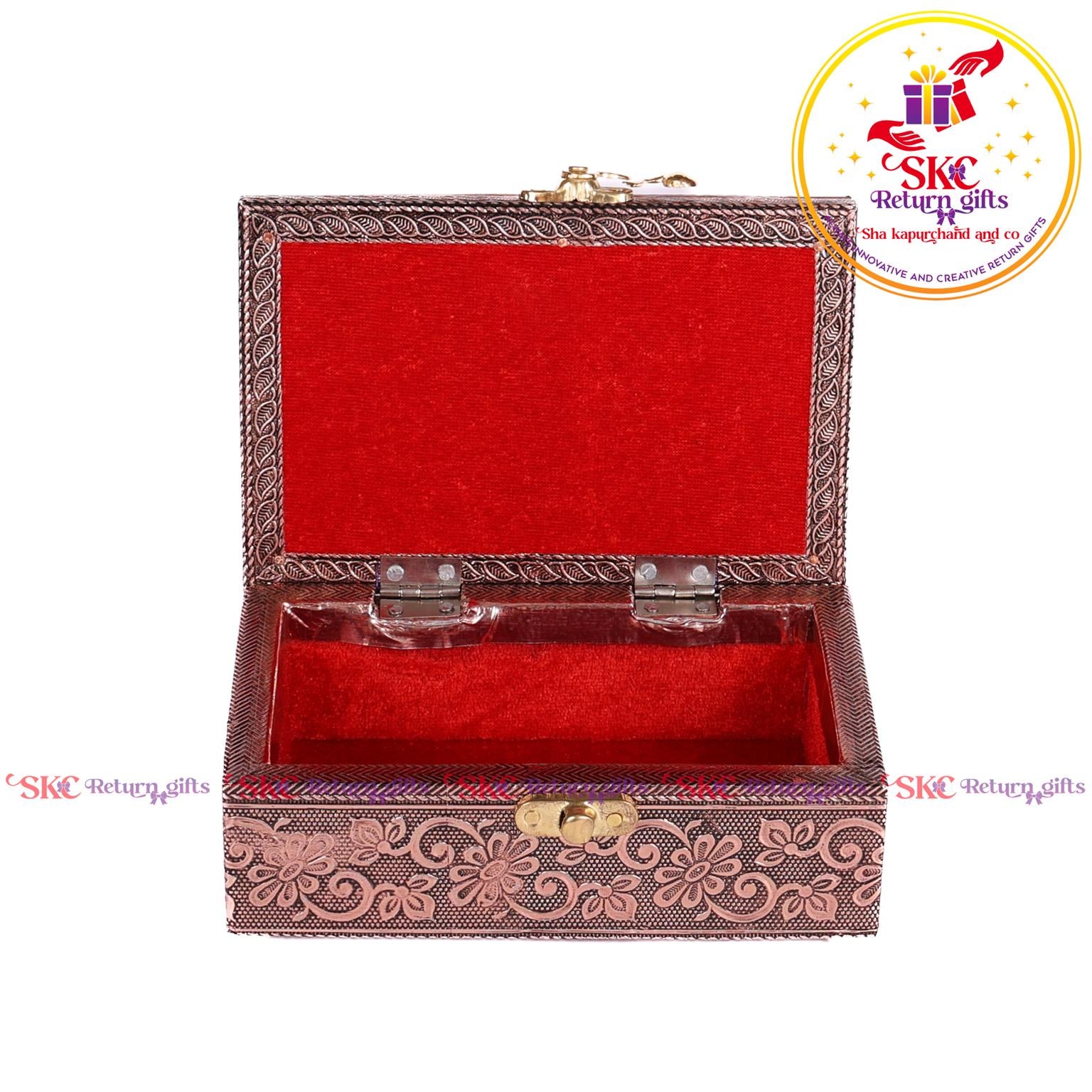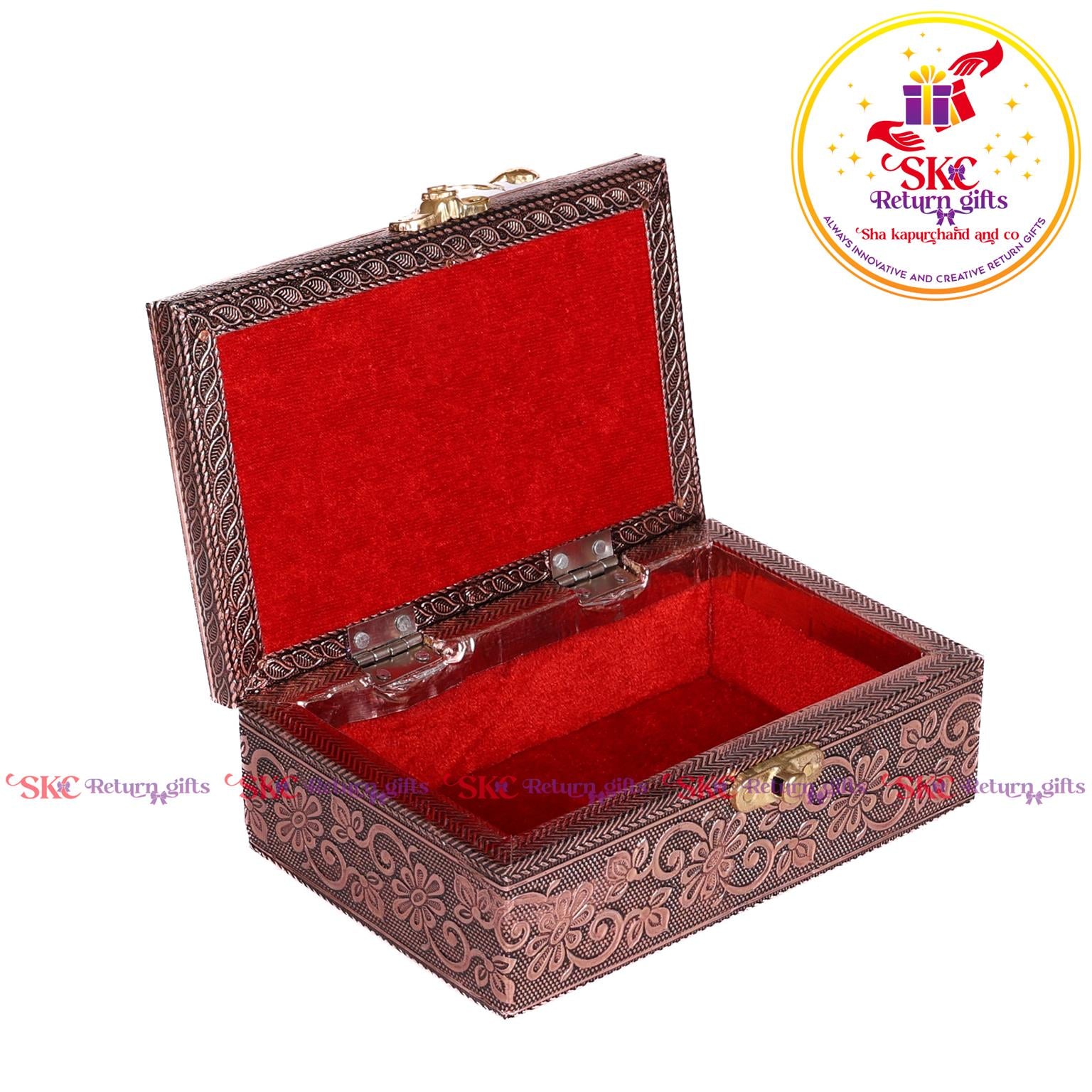 Elevate your return gifts with our exquisite collection of pooja and jewel boxes, designed to be both functional and enchanting. Crafted with intricate detailing and inspired by traditional artistry, these boxes are perfect for storing. Pooja items i, jewelry, or cherished treasures. A blend of cultural heritage and modern elegance, . Delight your guests with a gift that symbolizes both utility and timeless beauty.