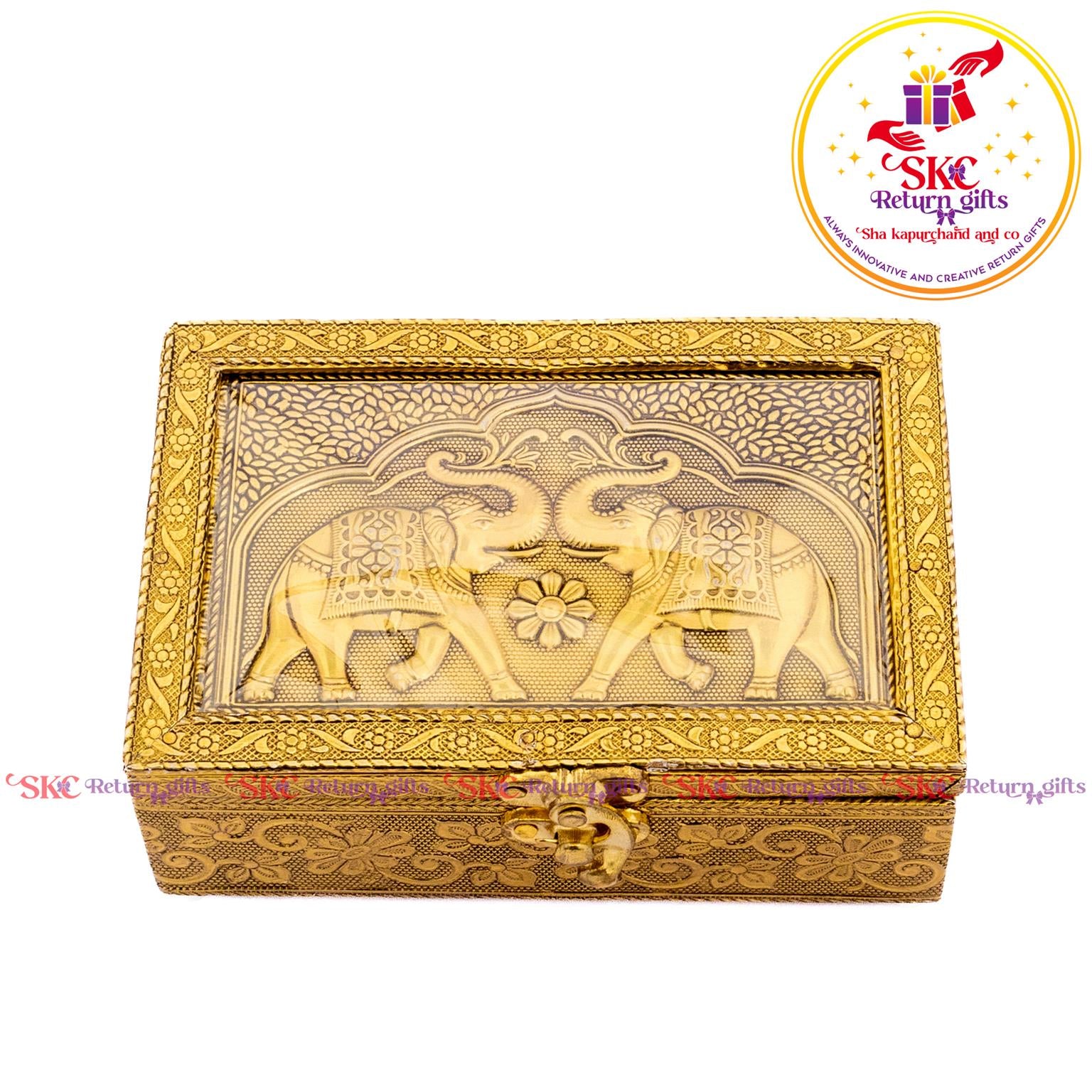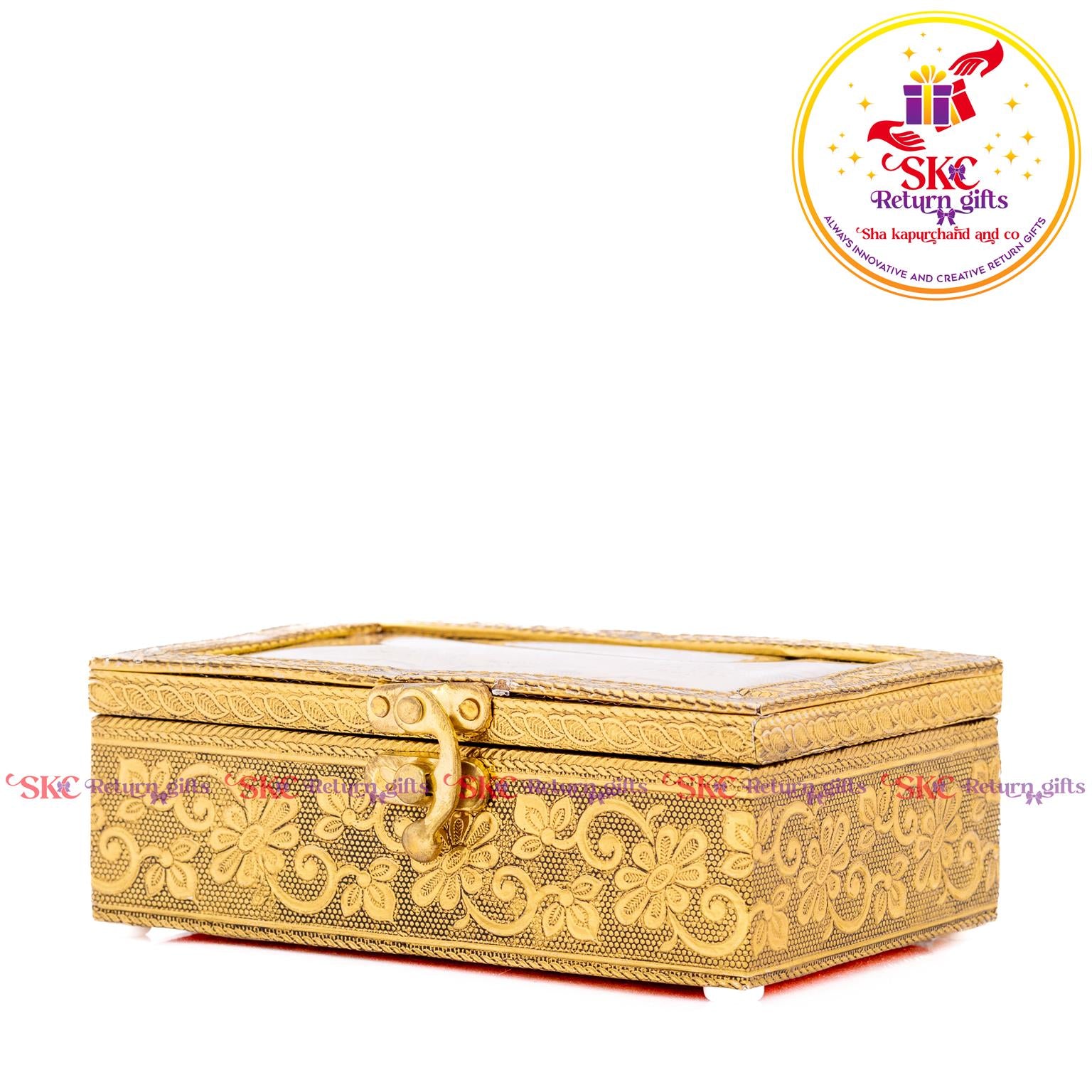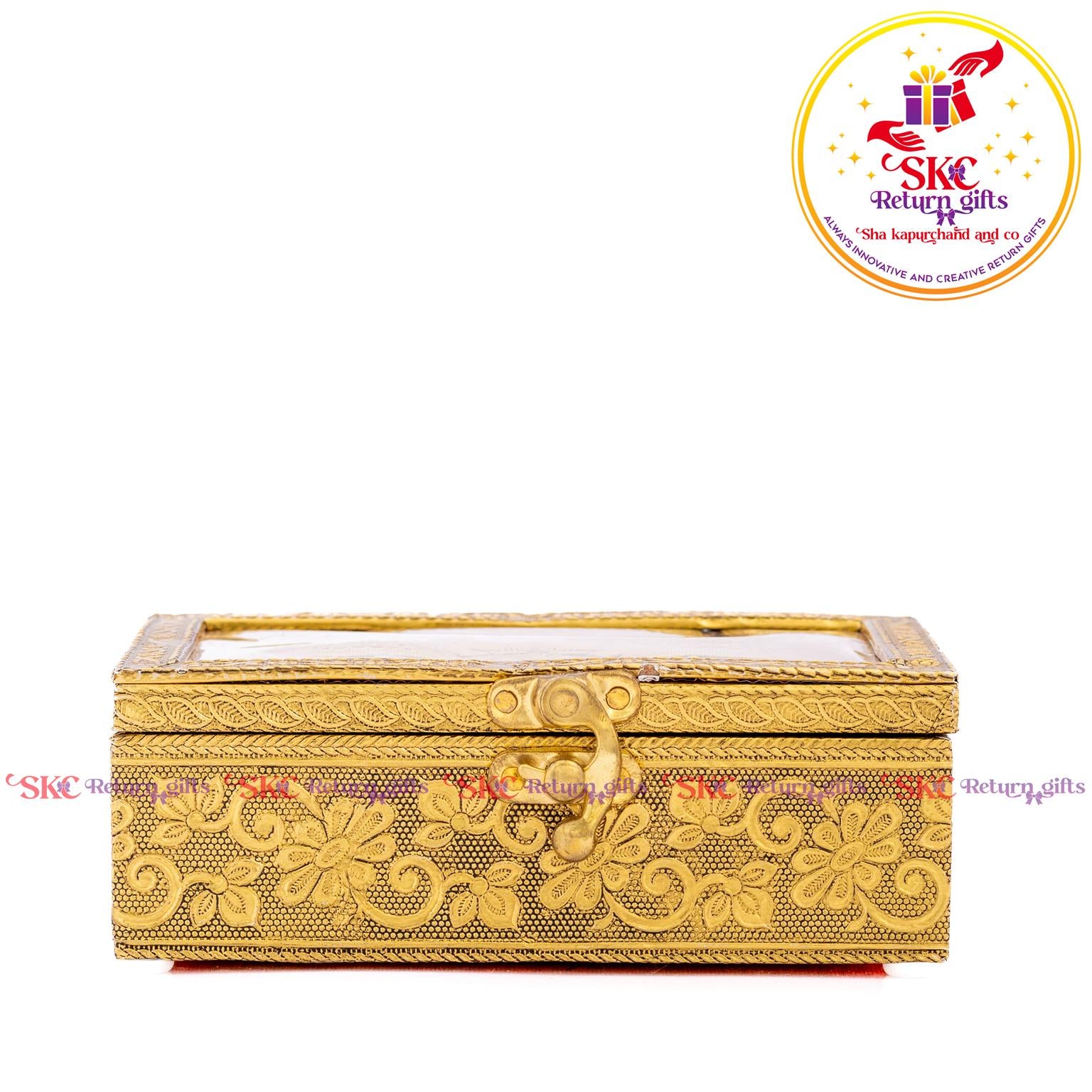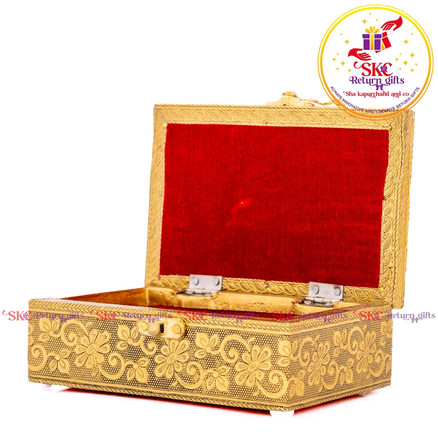 Elevate your return gifts with our exquisite collection of pooja and jewel boxes, designed to be both functional and enchanting. Crafted with intricate detailing and inspired by traditional artistry, these boxes are perfect for storing. Pooja items i, jewelry, or cherished treasures. A blend of cultural heritage and modern elegance, . Delight your guests with a gift that symbolizes both utility and timeless beauty.