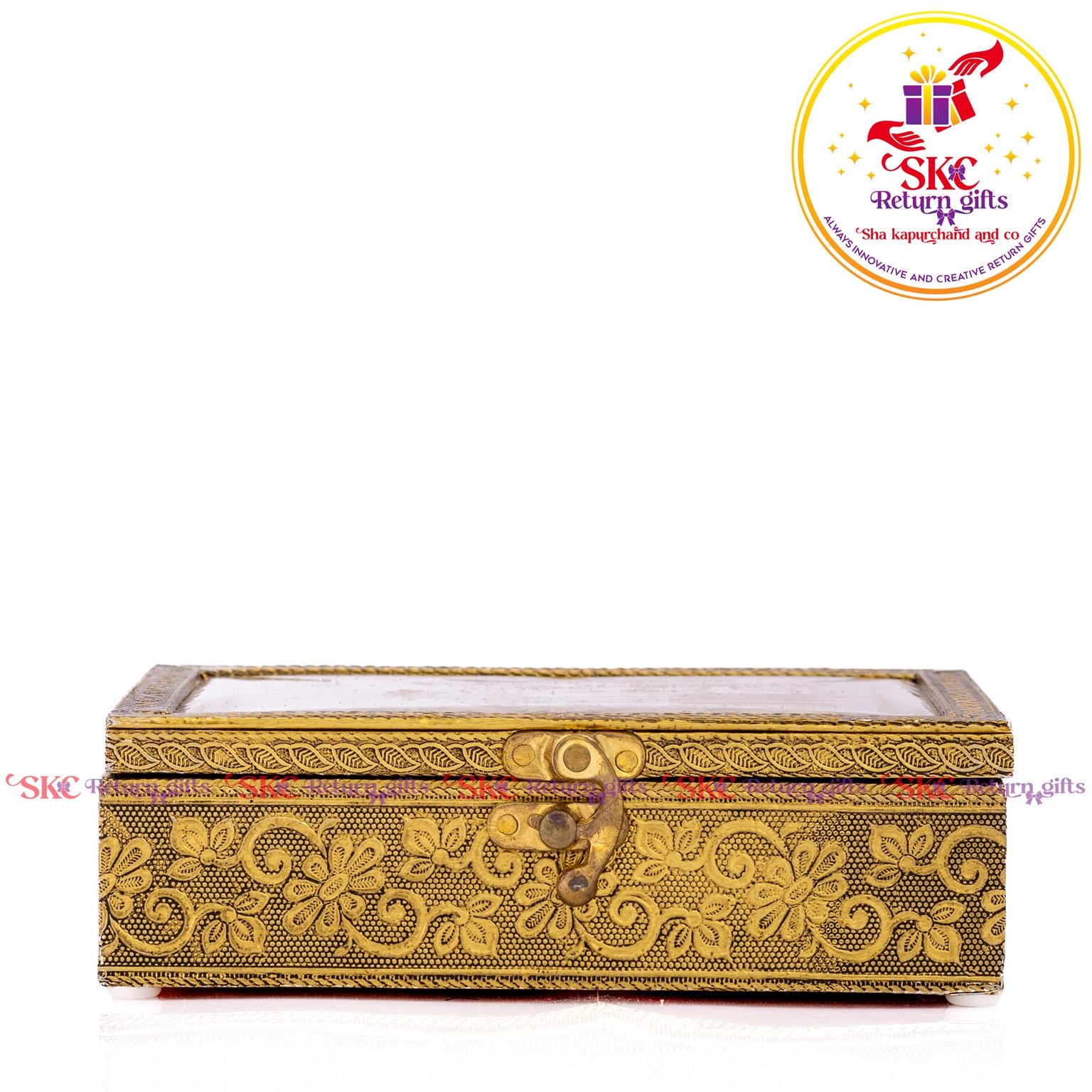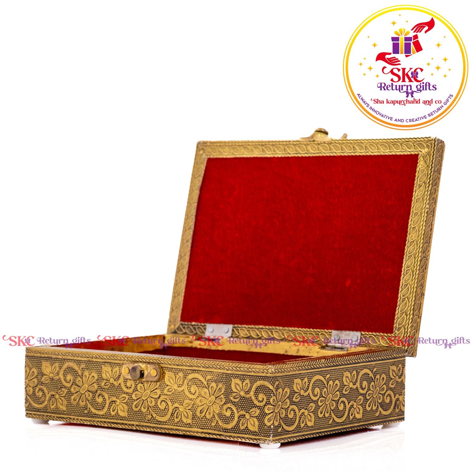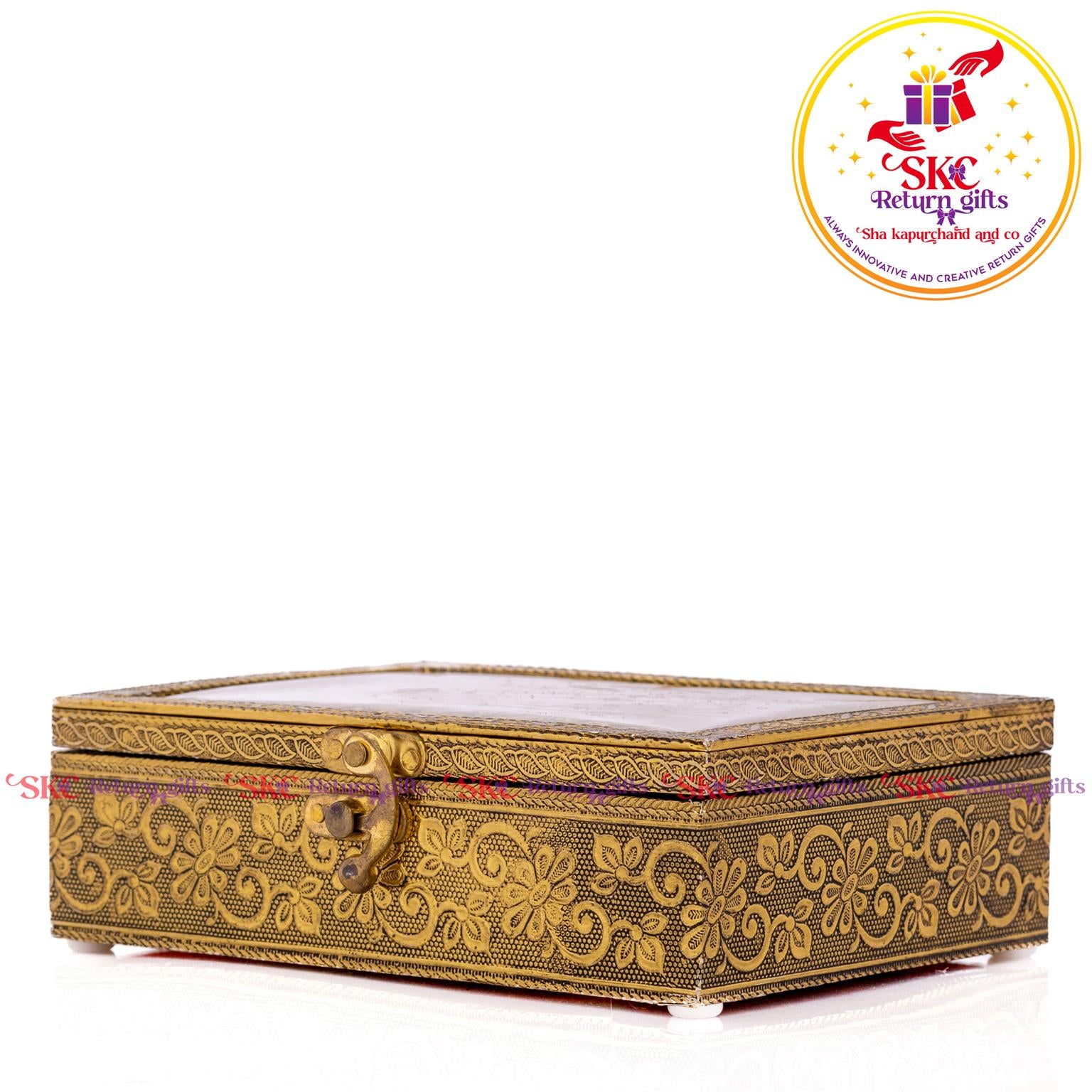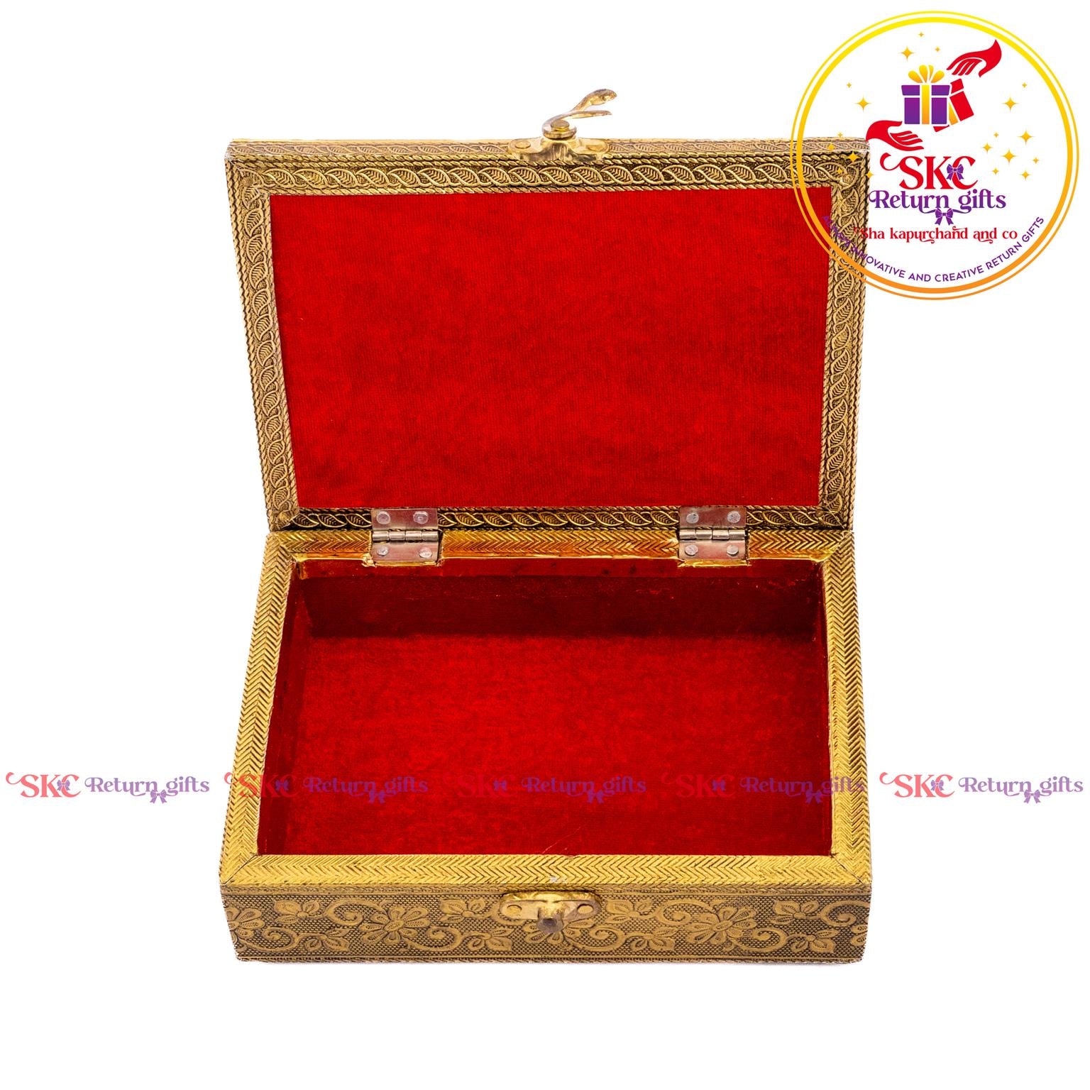 Elevate your return gifts with our exquisite collection of pooja and jewel boxes, designed to be both functional and enchanting. Crafted with intricate detailing and inspired by traditional artistry, these boxes are perfect for storing. Pooja items i, jewelry, or cherished treasures. A blend of cultural heritage and modern elegance, . Delight your guests with a gift that symbolizes both utility and timeless beauty.