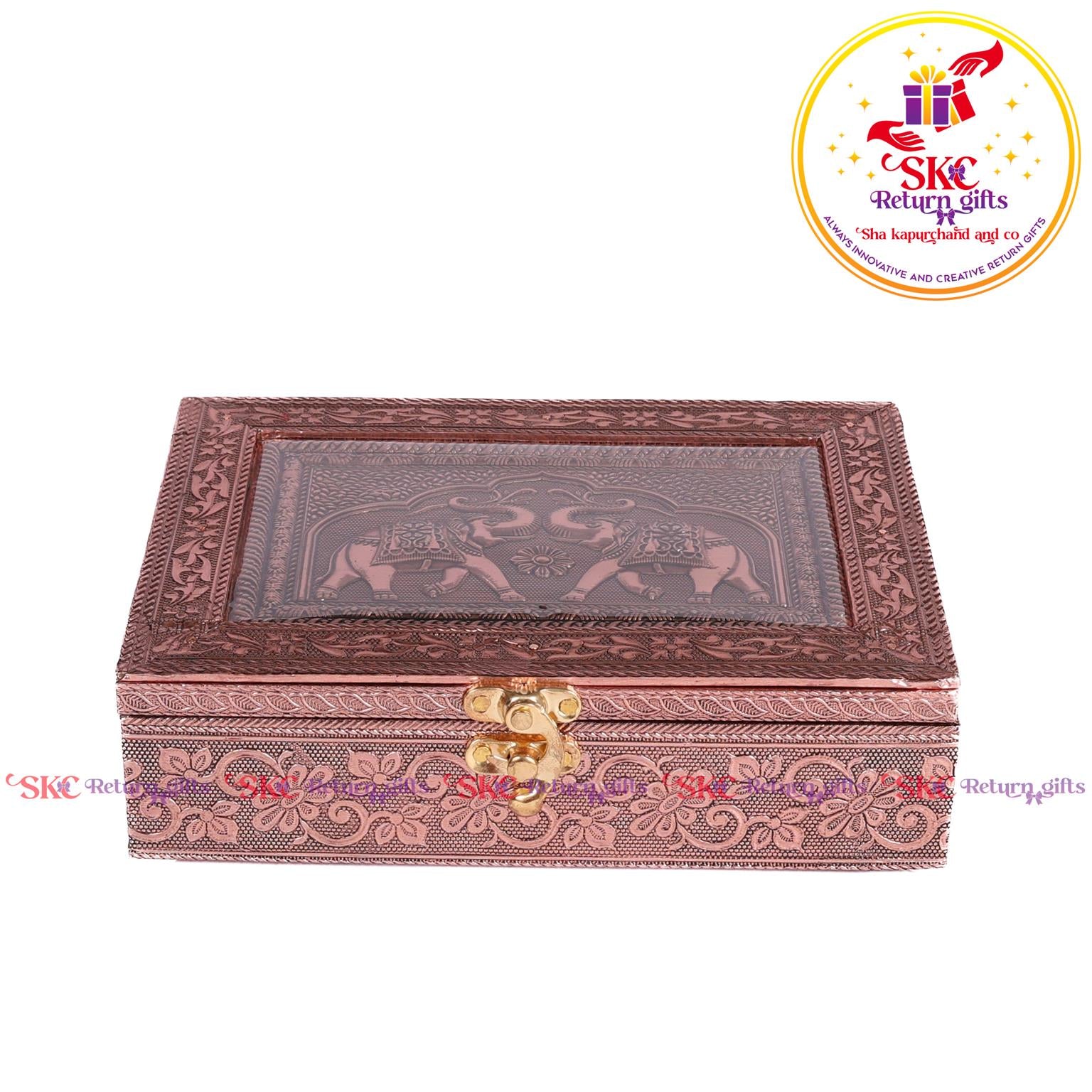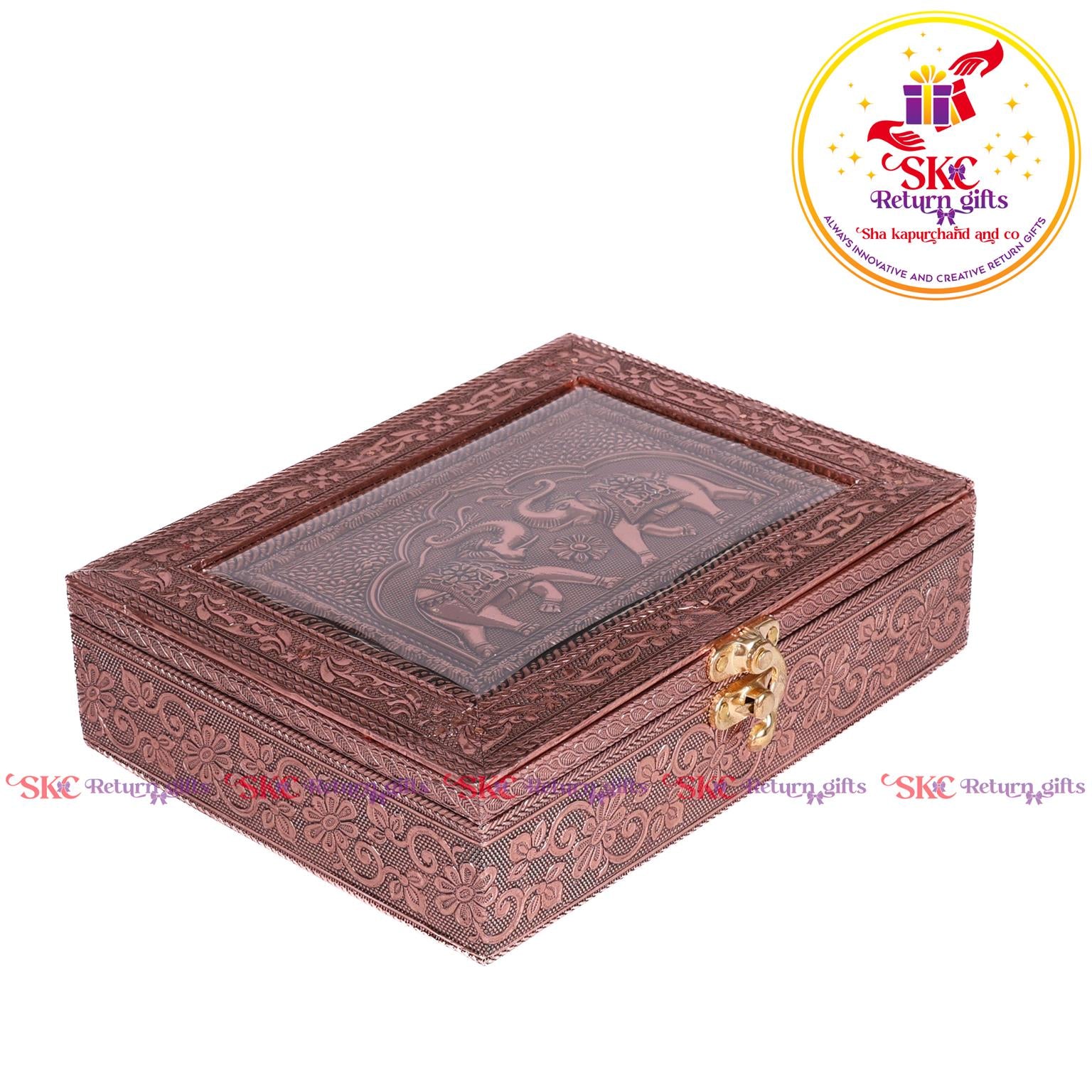 Elevate your return gifts with our exquisite collection of pooja and jewel boxes, designed to be both functional and enchanting. Crafted with intricate detailing and inspired by traditional artistry, these boxes are perfect for storing. Pooja items i, jewelry, or cherished treasures. A blend of cultural heritage and modern elegance, . Delight your guests with a gift that symbolizes both utility and timeless beauty.