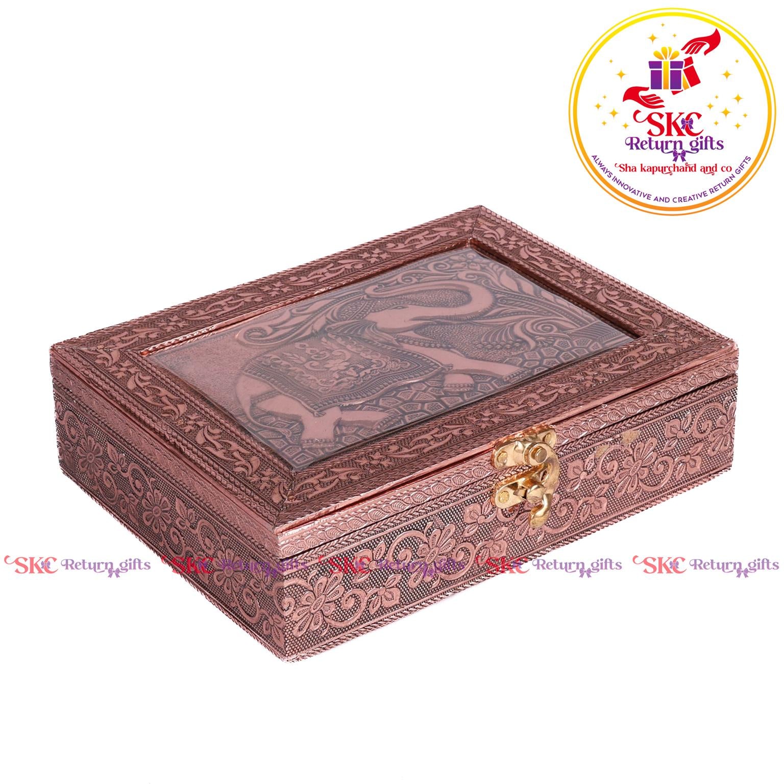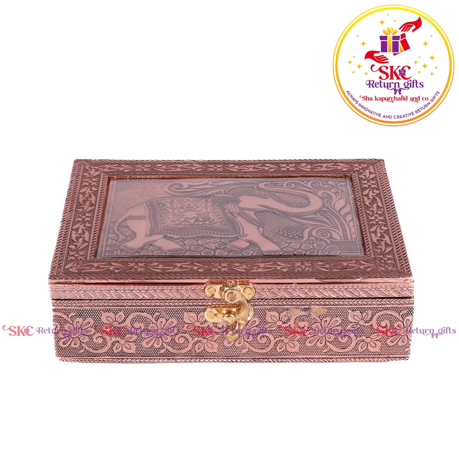 Elevate your return gifts with our exquisite collection of pooja and jewel boxes, designed to be both functional and enchanting. Crafted with intricate detailing and inspired by traditional artistry, these boxes are perfect for storing. Pooja items i, jewelry, or cherished treasures. A blend of cultural heritage and modern elegance, . Delight your guests with a gift that symbolizes both utility and timeless beauty.