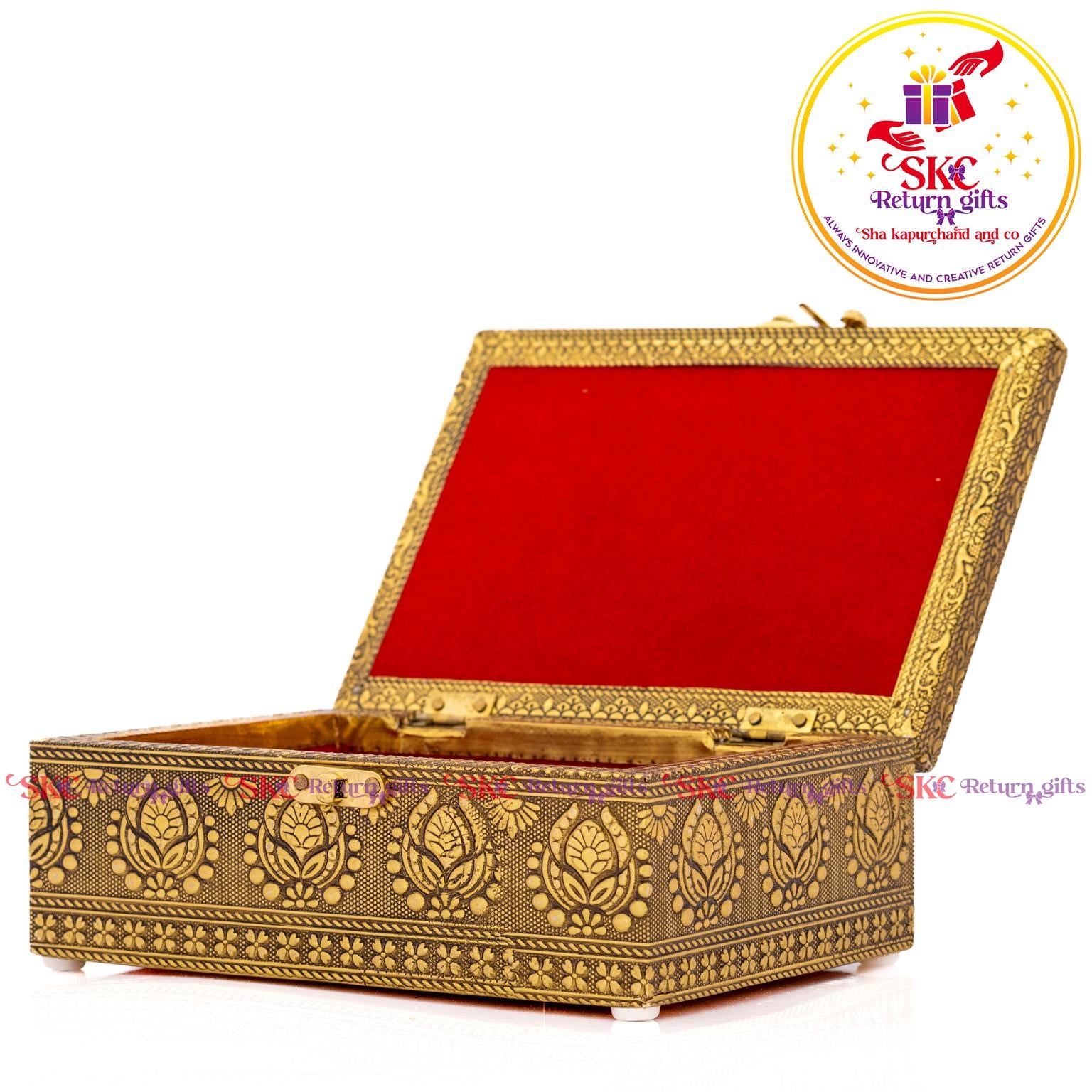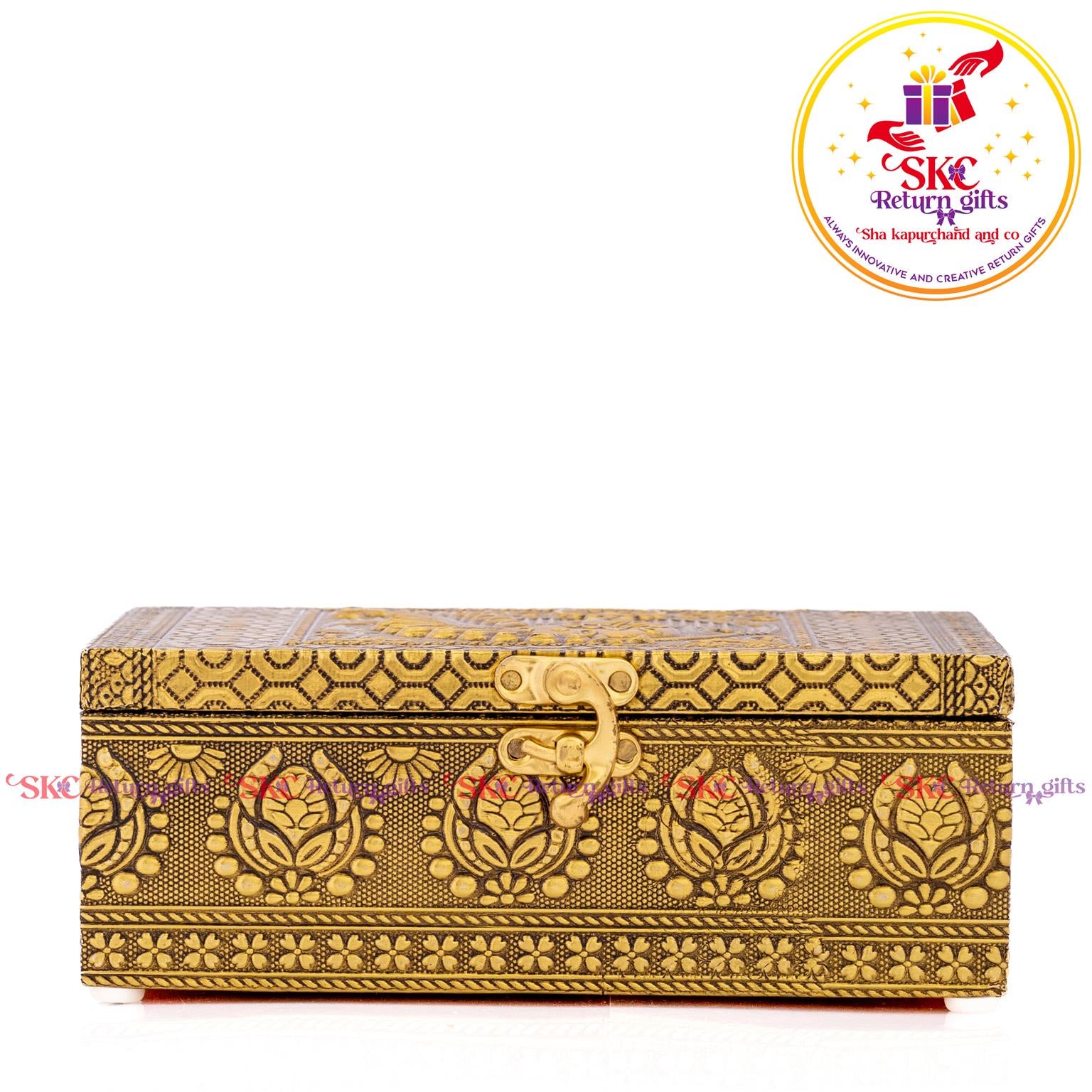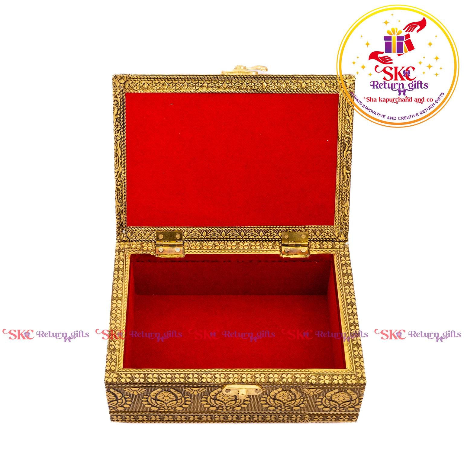 Elevate your return gifts with our exquisite collection of pooja and jewel boxes, designed to be both functional and enchanting. Crafted with intricate detailing and inspired by traditional artistry, these boxes are perfect for storing. Pooja items i, jewelry, or cherished treasures. A blend of cultural heritage and modern elegance, . Delight your guests with a gift that symbolizes both utility and timeless beauty.