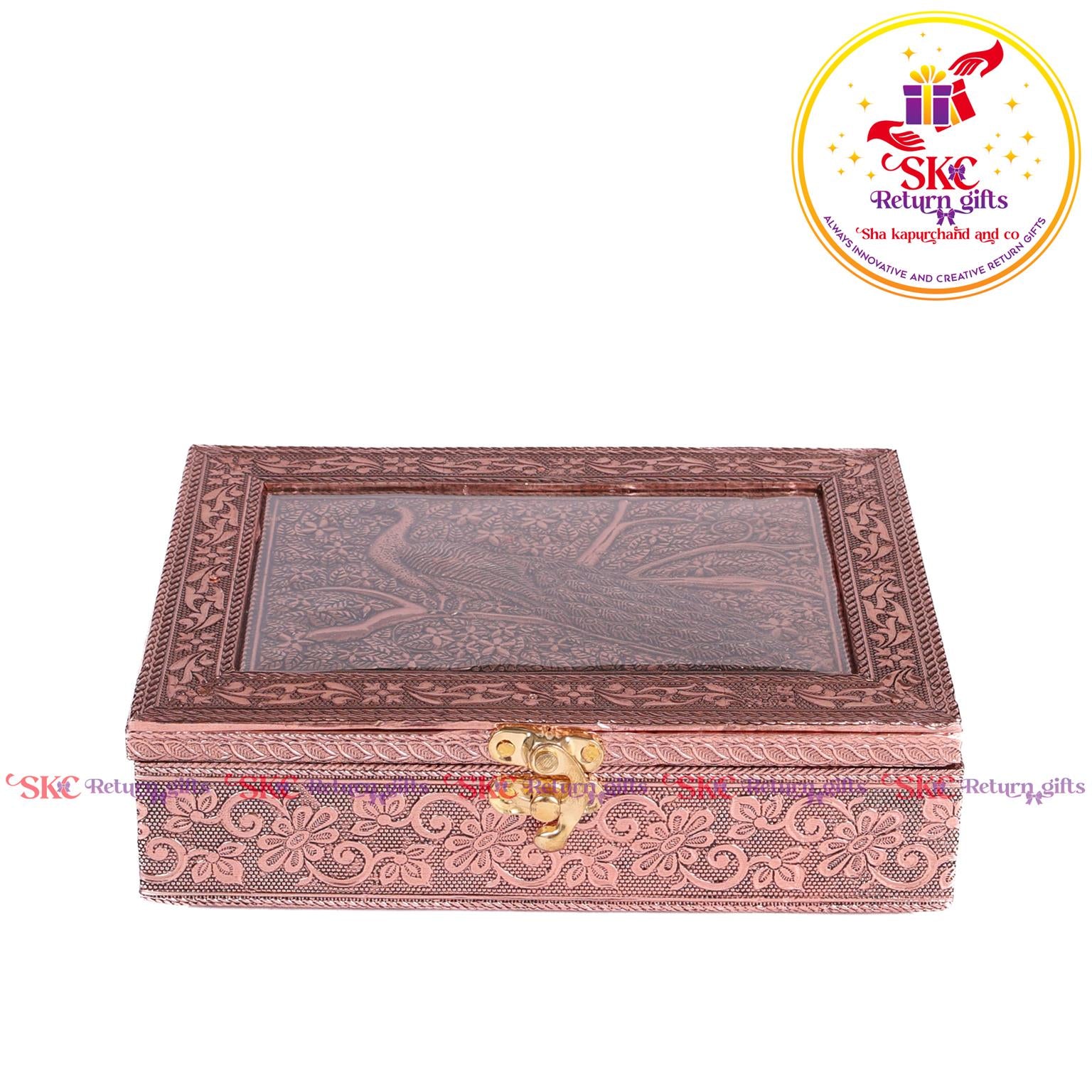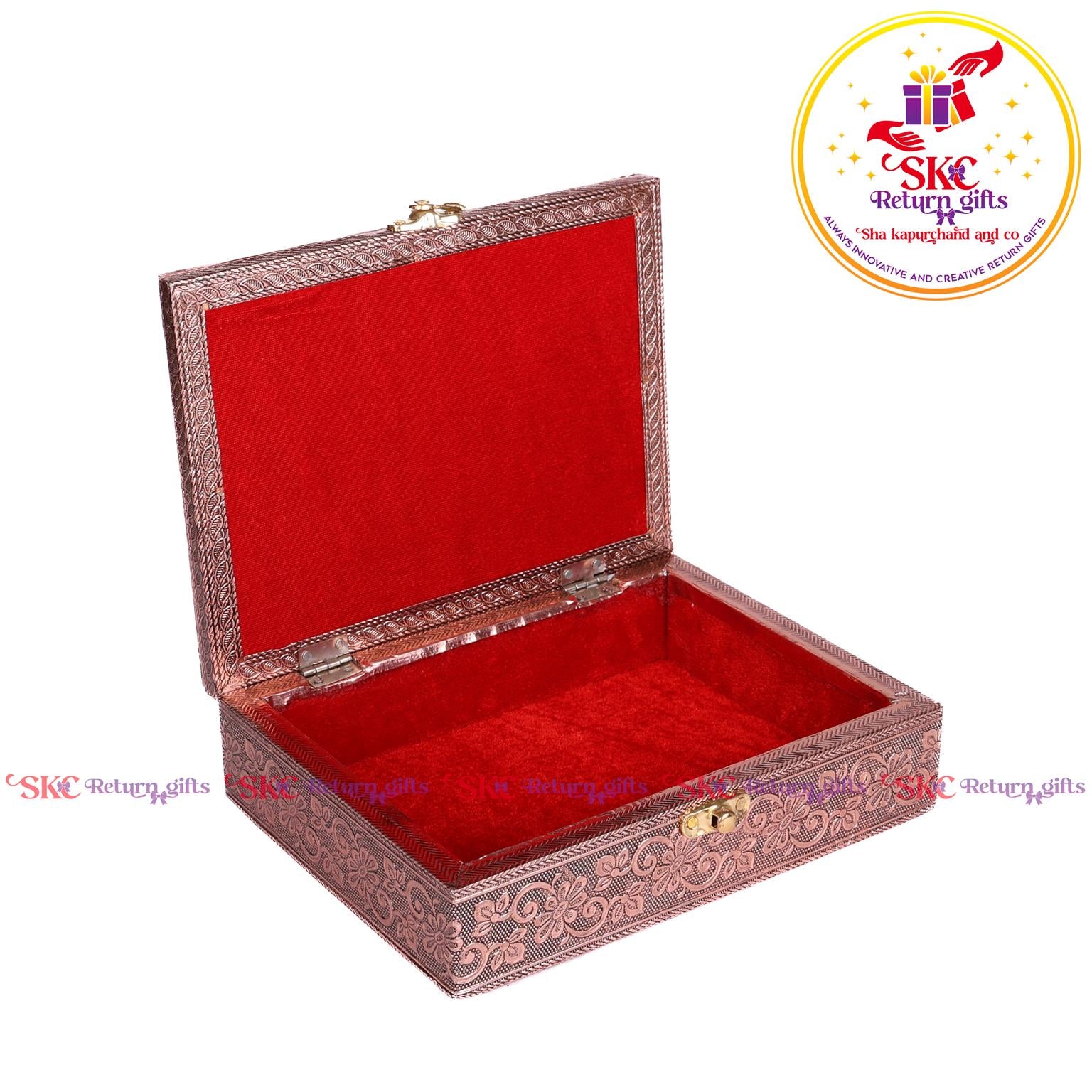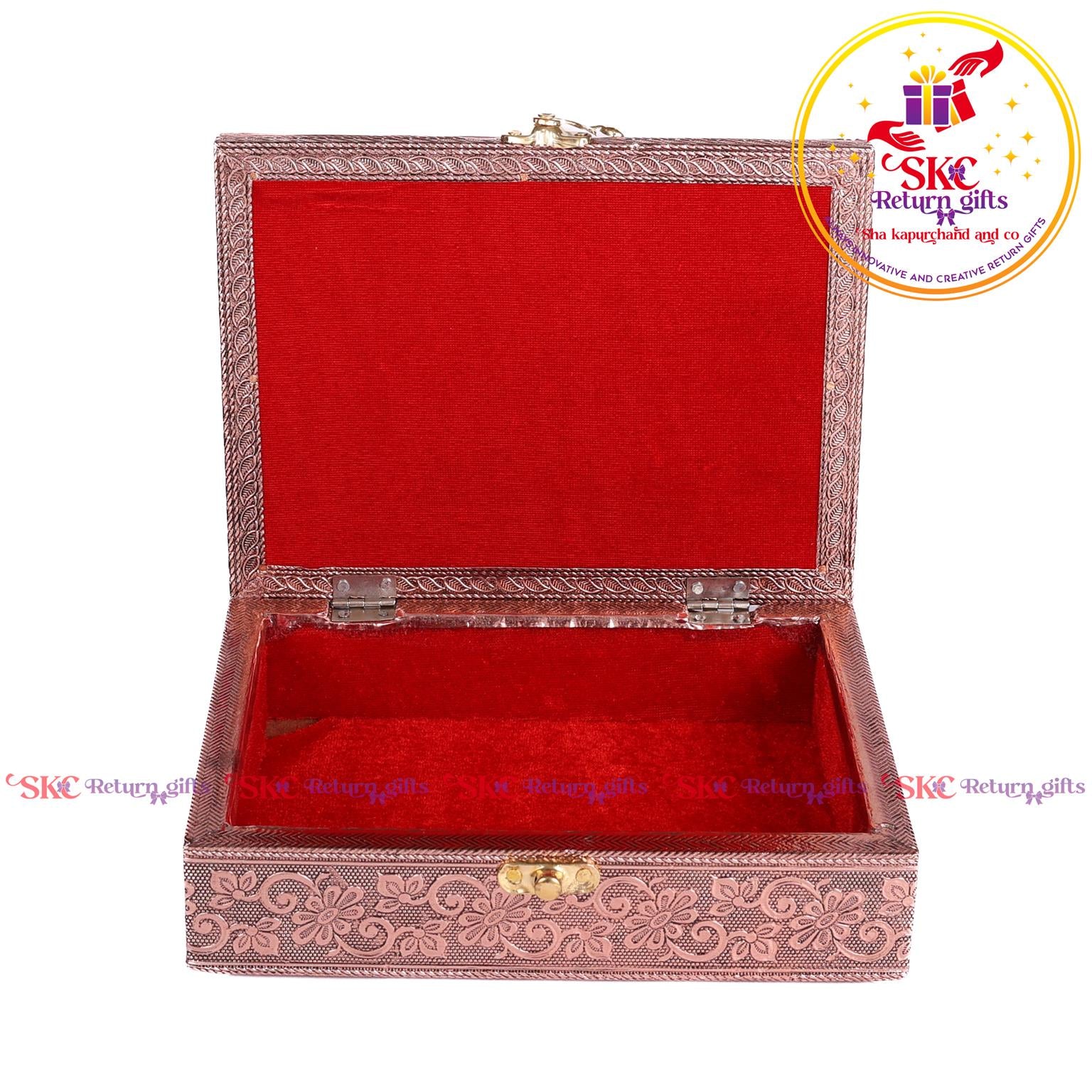 Elevate your return gifts with our exquisite collection of pooja and jewel boxes, designed to be both functional and enchanting. Crafted with intricate detailing and inspired by traditional artistry, these boxes are perfect for storing. Pooja items i, jewelry, or cherished treasures. A blend of cultural heritage and modern elegance, . Delight your guests with a gift that symbolizes both utility and timeless beauty.