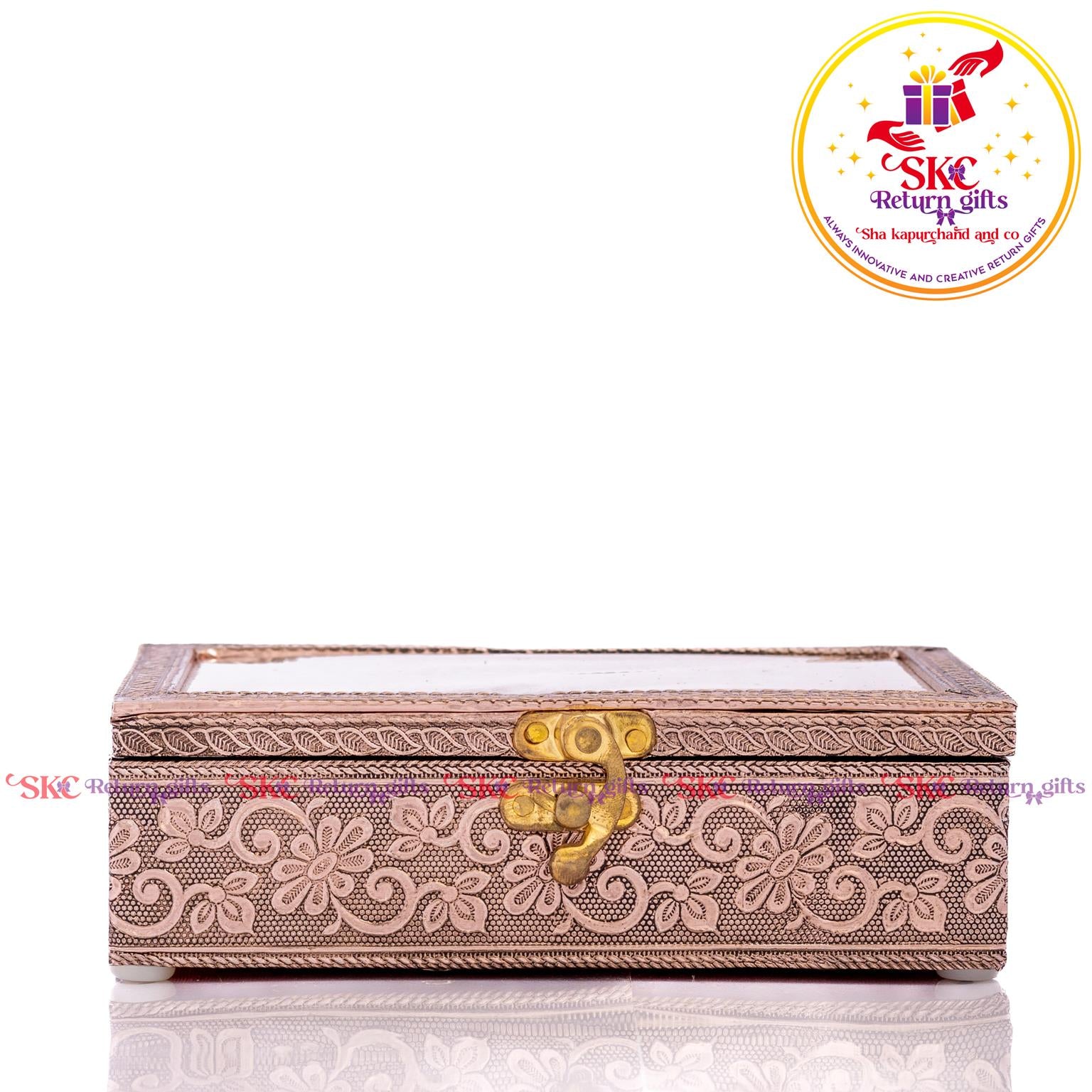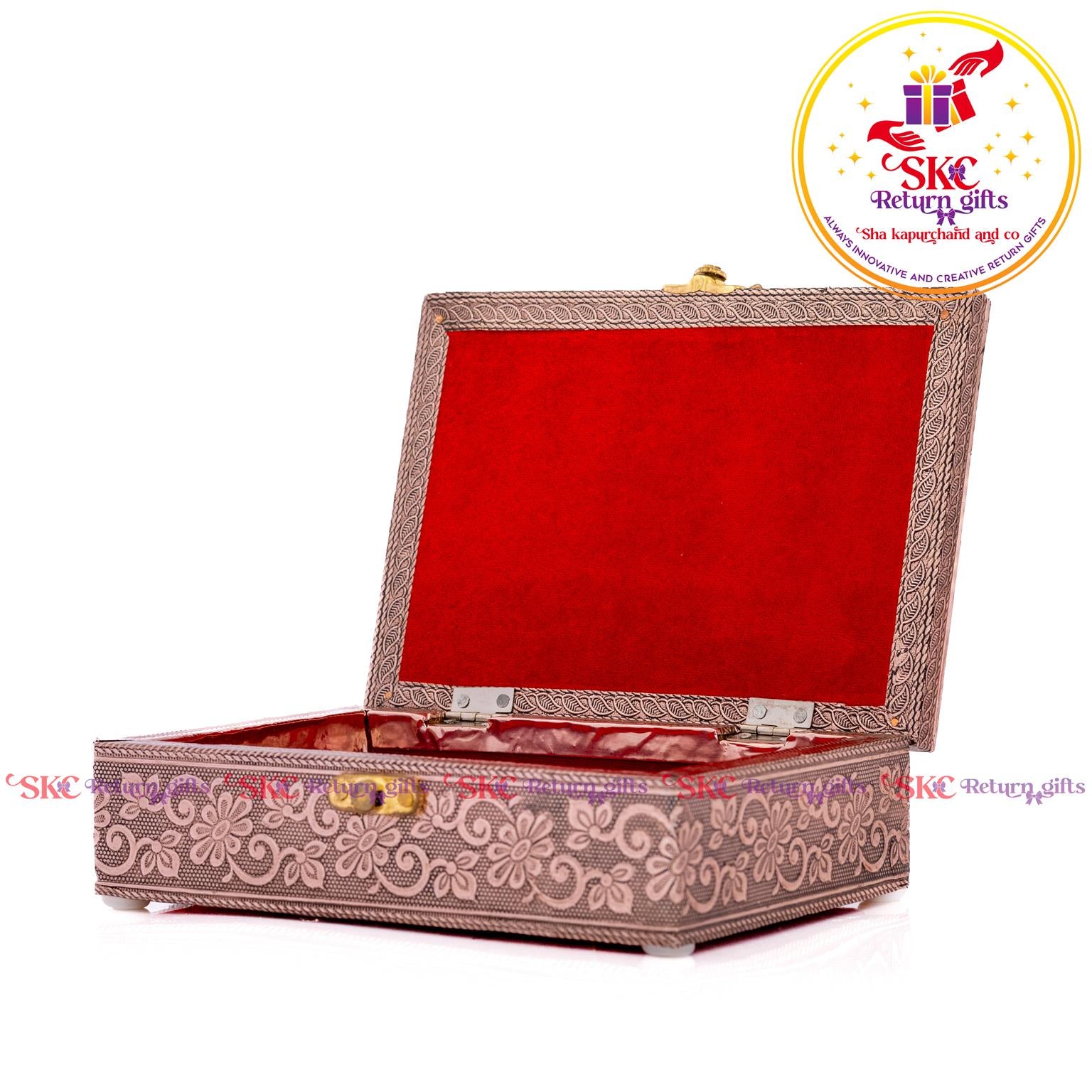Elevate your return gifts with our exquisite collection of pooja and jewel boxes, designed to be both functional and enchanting. Crafted with intricate detailing and inspired by traditional artistry, these boxes are perfect for storing. Pooja items i, jewelry, or cherished treasures. A blend of cultural heritage and modern elegance, . Delight your guests with a gift that symbolizes both utility and timeless beauty.
