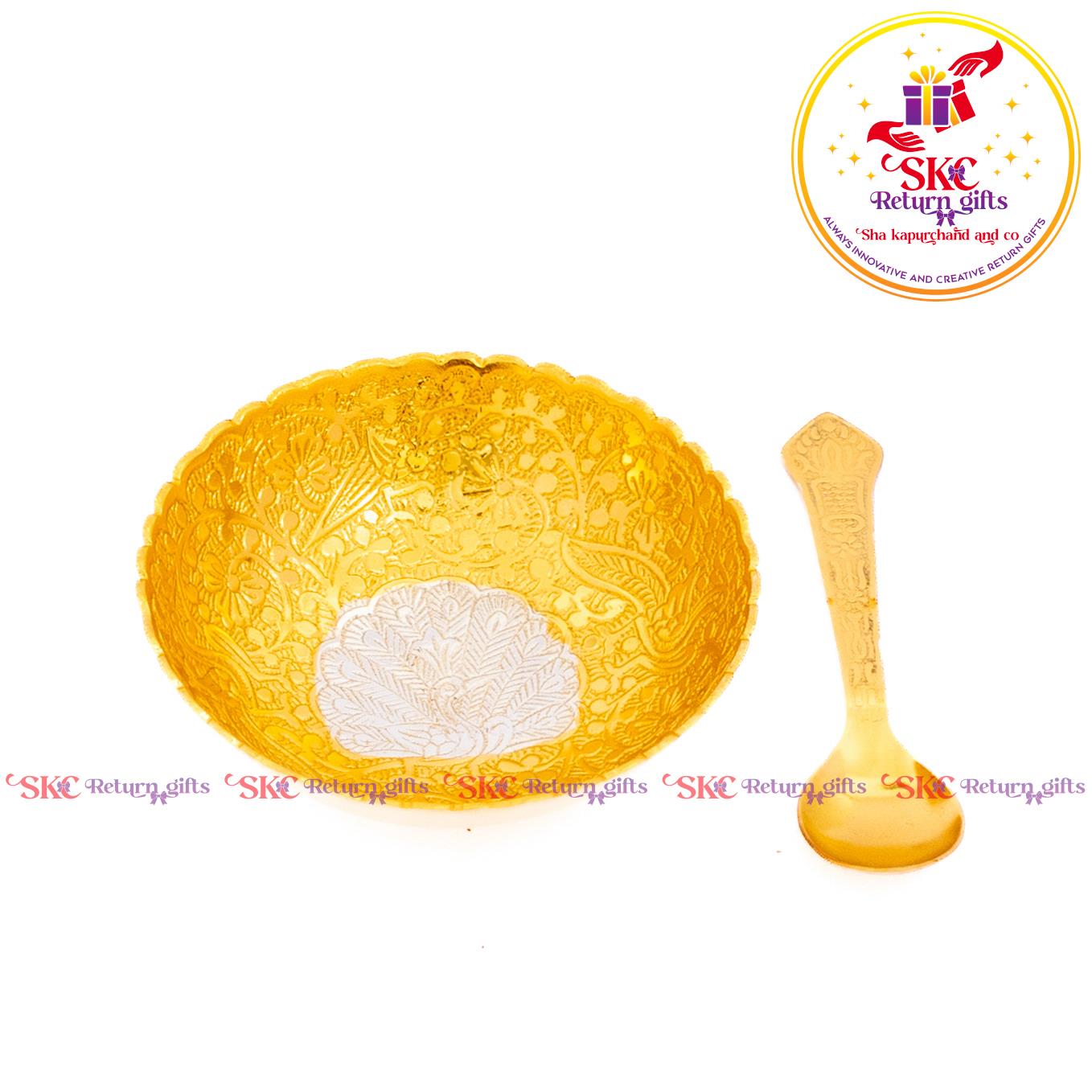 Our beautifully crafted gift bowl sets are the perfect return gift for any occasion, offering both elegance and functionality. Designed with intricate patterns and divine motifs, these bowls are ideal for serving sweets, dry fruits, or for use during pooja rituals. these sets add a touch of tradition and luxury to your guests' homes. A meaningful and practical gift that will be cherished for years, our gift bowl sets are sure to leave a lasting impression.