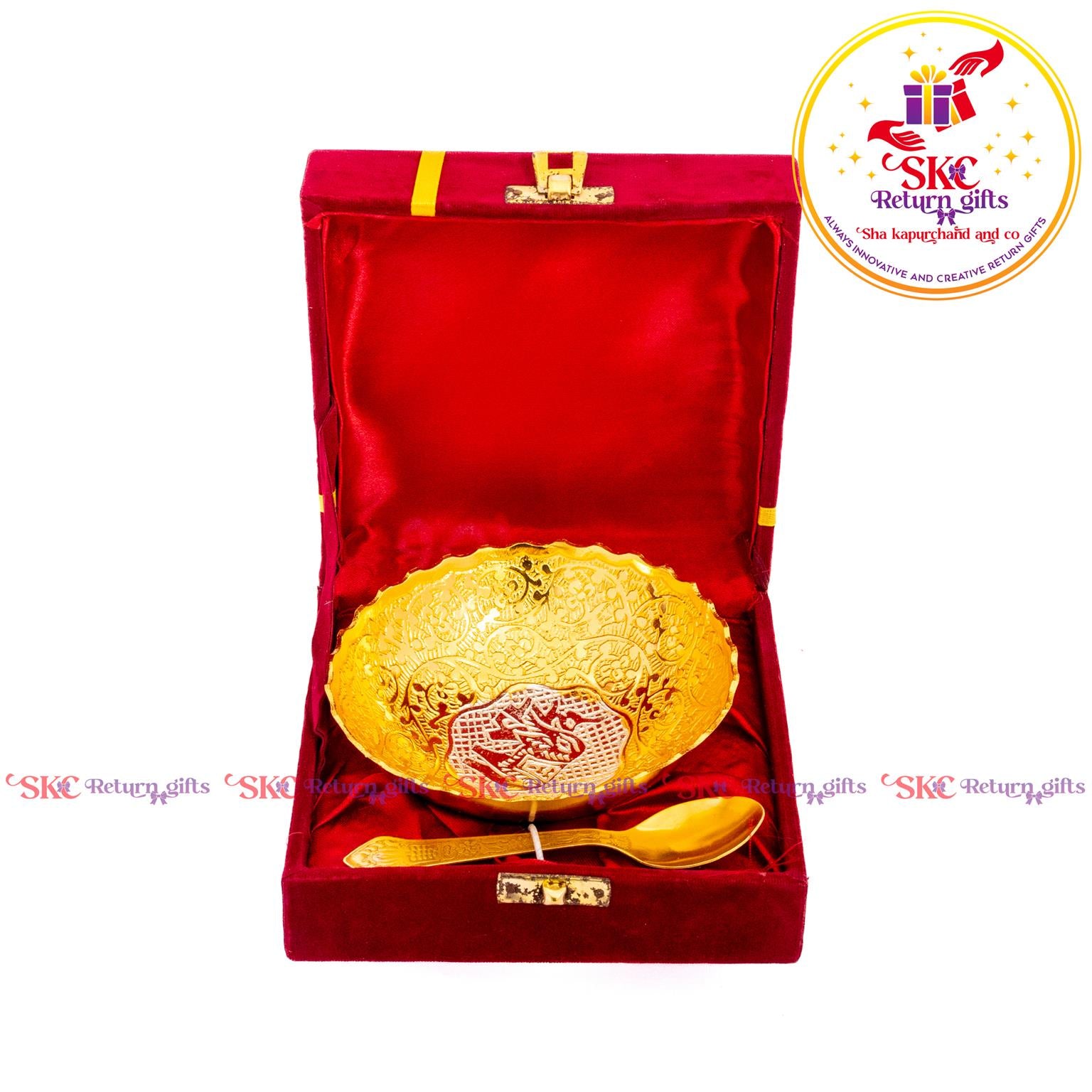 Our beautifully crafted gift bowl sets are the perfect return gift for any occasion, offering both elegance and functionality. Designed with intricate patterns and divine motifs, these bowls are ideal for serving sweets, dry fruits, or for use during pooja rituals. these sets add a touch of tradition and luxury to your guests' homes. A meaningful and practical gift that will be cherished for years, our gift bowl sets are sure to leave a lasting impression.