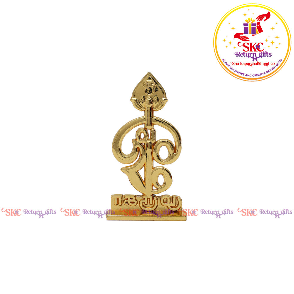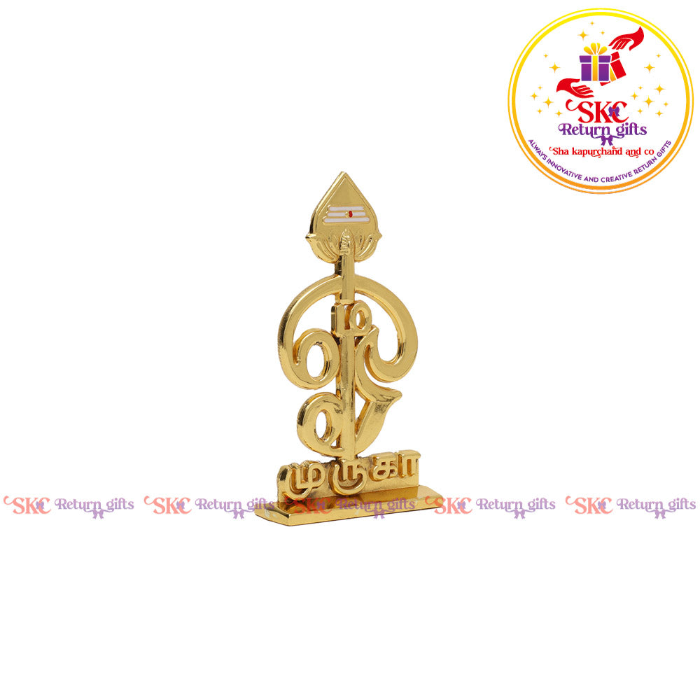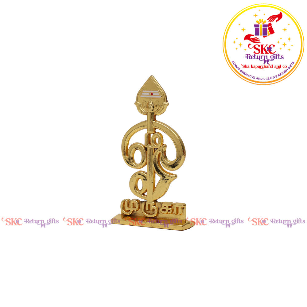 Embrace the essence of Tamil culture and spirituality with our finely crafted Tamil Om and Murugan Vel stands, ideal for return gifts. Symbolizing divine energy, protection, and prosperity, these stands are Designed with intricate detailing and durable materials, they serve as a meaningful token of gratitude that your guests will treasure. Add a touch of tradition and elegance to your celebrations with these timeless keepsakes.