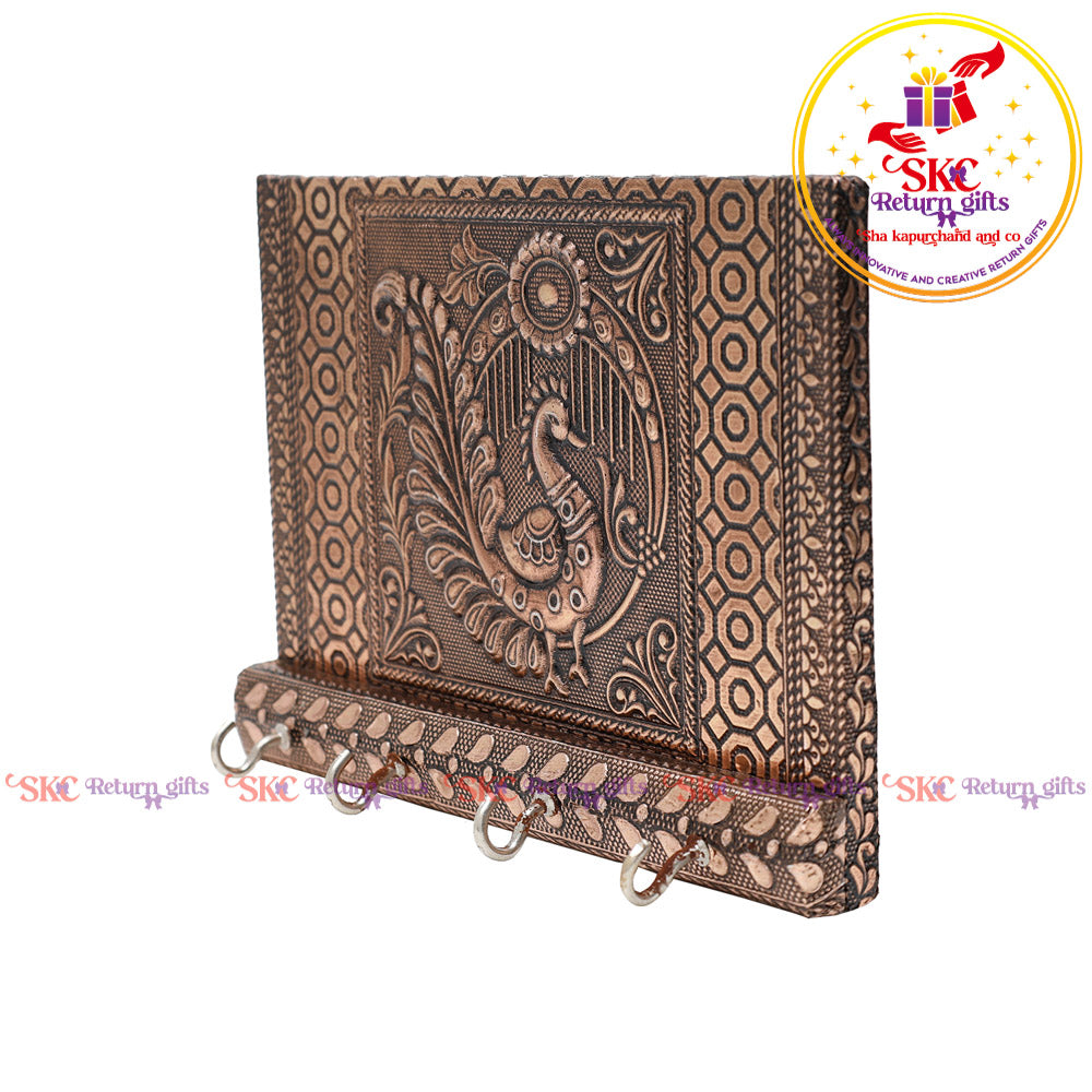 Redefine everyday essentials with our uniquely designed key stands that combine utility with a divine aura. Perfect as return gifts, these key holders feature artistic spiritual elements, adding charm and meaning to your guests' homes. From minimalist designs to intricate patterns inspired by traditional motifs, our key stands are both practical and visually striking. Give your loved ones a thoughtful gift that keeps their keys—and blessings—in one place.