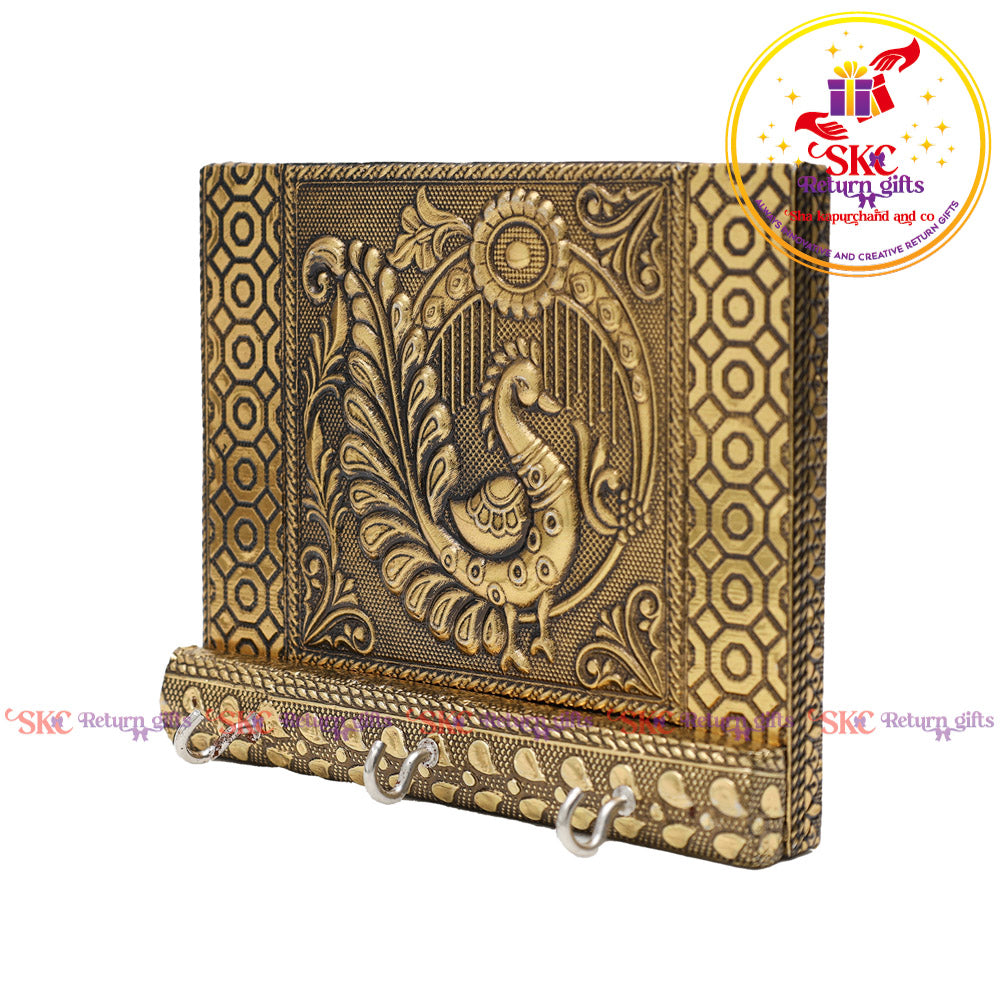Redefine everyday essentials with our uniquely designed key stands that combine utility with a divine aura. Perfect as return gifts, these key holders feature artistic spiritual elements, adding charm and meaning to your guests' homes. From minimalist designs to intricate patterns inspired by traditional motifs, our key stands are both practical and visually striking. Give your loved ones a thoughtful gift that keeps their keys—and blessings—in one place.