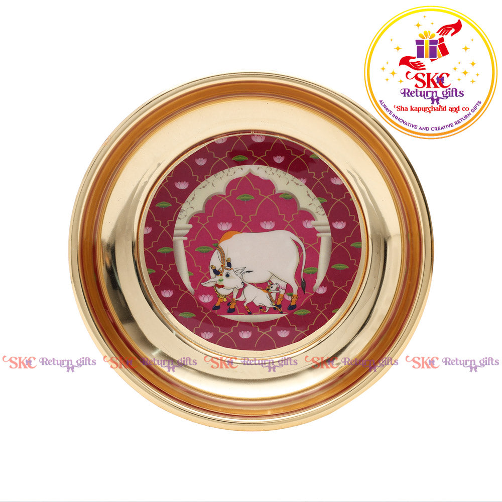 Pichwai Gold Plating Pooja Plate
