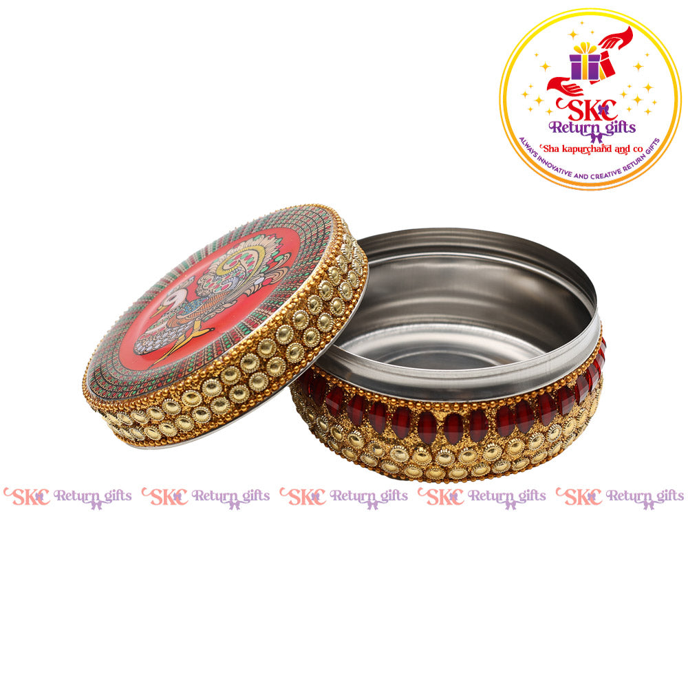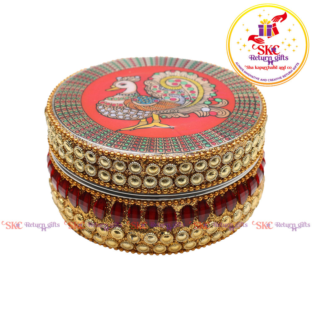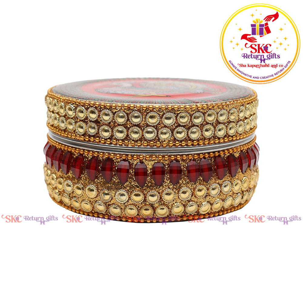 Elevate your return gifts with our exquisite Jaipur Kundan Box, a perfect blend of tradition and luxury. Adorned with intricate Kundan work, this elegant box is ideal for storing jewelry or cherished keepsakes, making it a timeless token of appreciation.