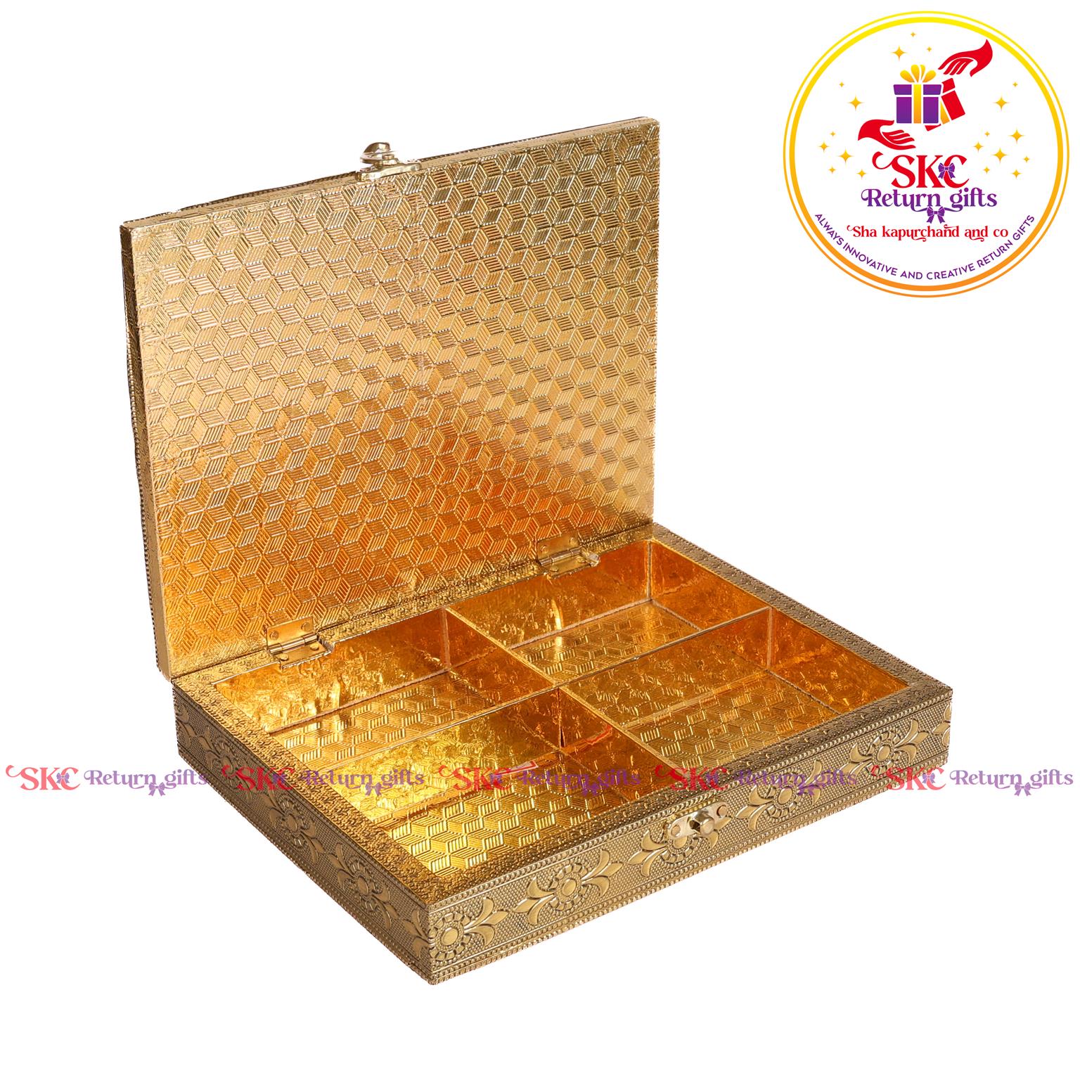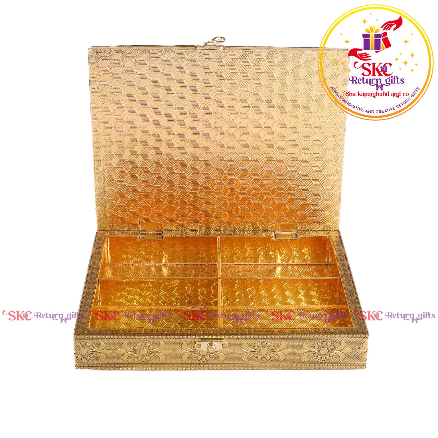 Elevate your return gifts with our exquisite collection of pooja and jewel boxes, designed to be both functional and enchanting. Crafted with intricate detailing and inspired by traditional artistry, these boxes are perfect for storing. Pooja items i, jewelry, or cherished treasures. A blend of cultural heritage and modern elegance, . Delight your guests with a gift that symbolizes both utility and timeless beauty.