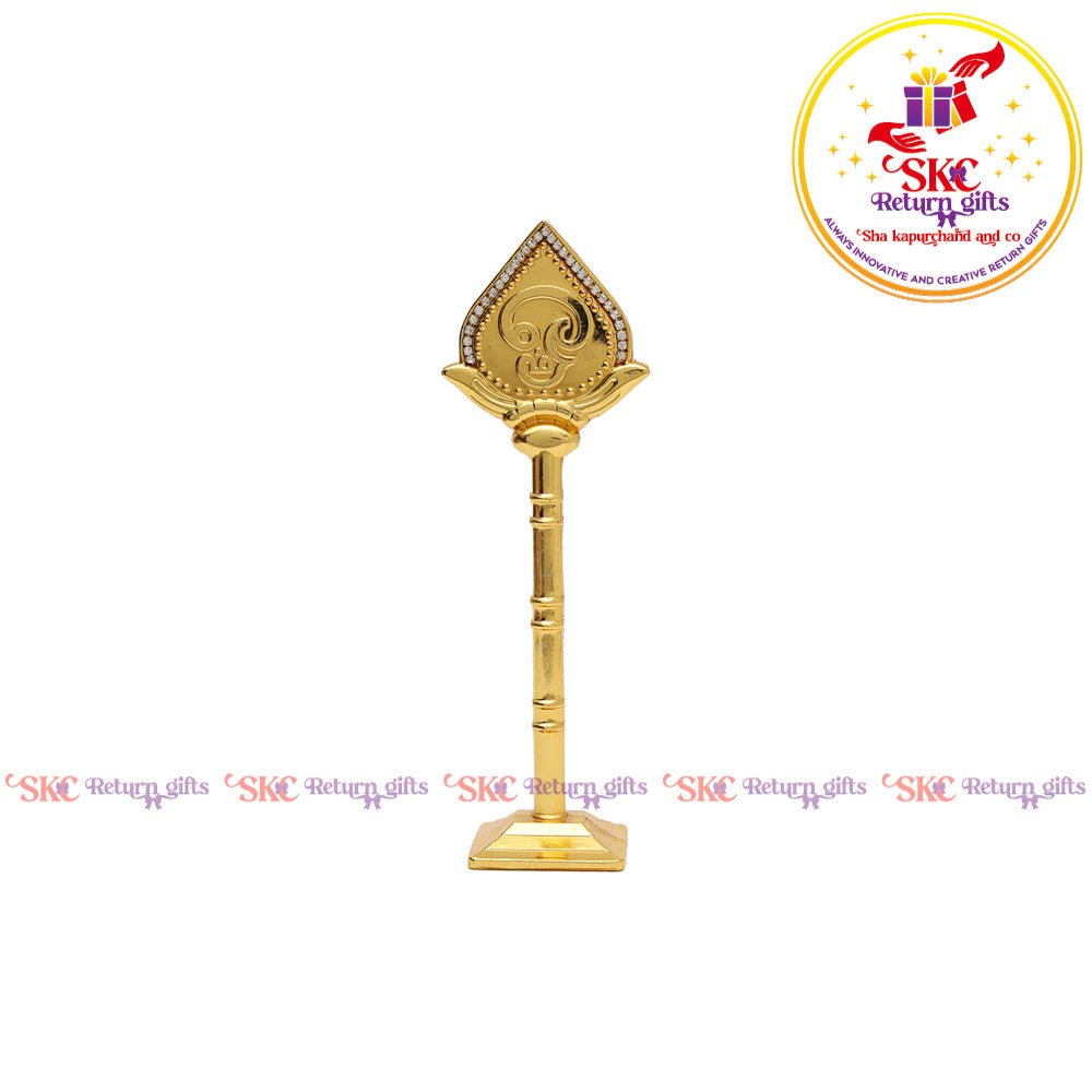 Embrace the essence of Tamil culture and spirituality with our finely crafted Tamil Om and Murugan Vel stands, ideal for return gifts. Symbolizing divine energy, protection, and prosperity, these stands are Designed with intricate detailing and durable materials, they serve as a meaningful token of gratitude that your guests will treasure. Add a touch of tradition and elegance to your celebrations with these timeless keepsakes.