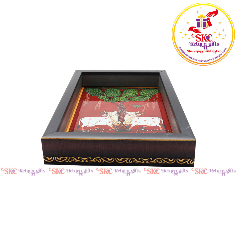 Make your celebrations special with our elegantly crafted Tambulam Trays, perfect for return gifts. Designed to hold betel leaves, sweets, and other offerings, these trays add a touch of tradition and grace to any occasion.