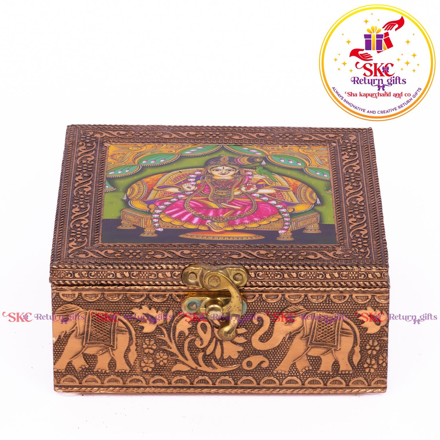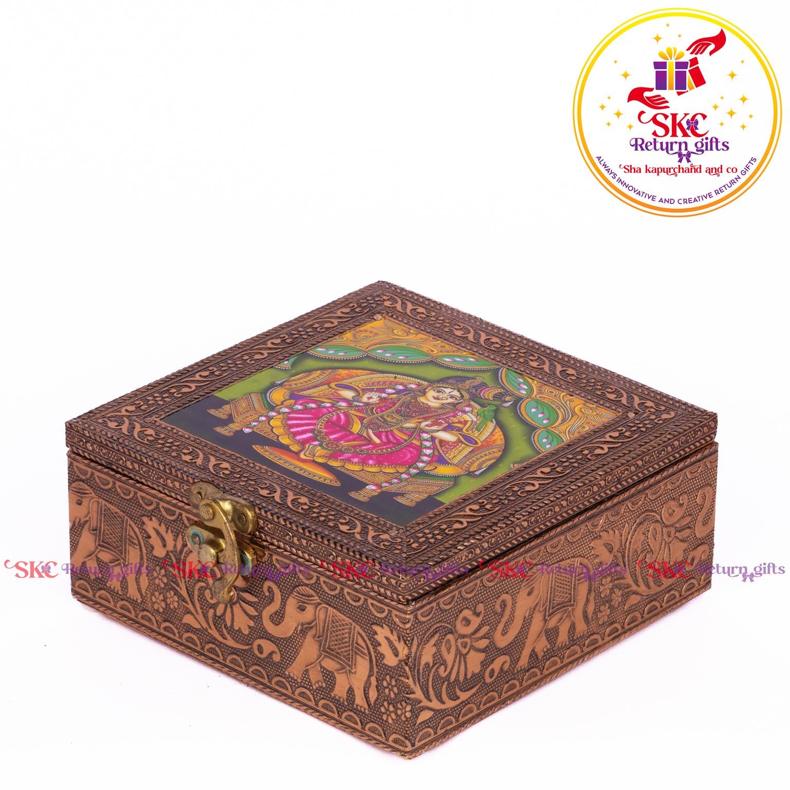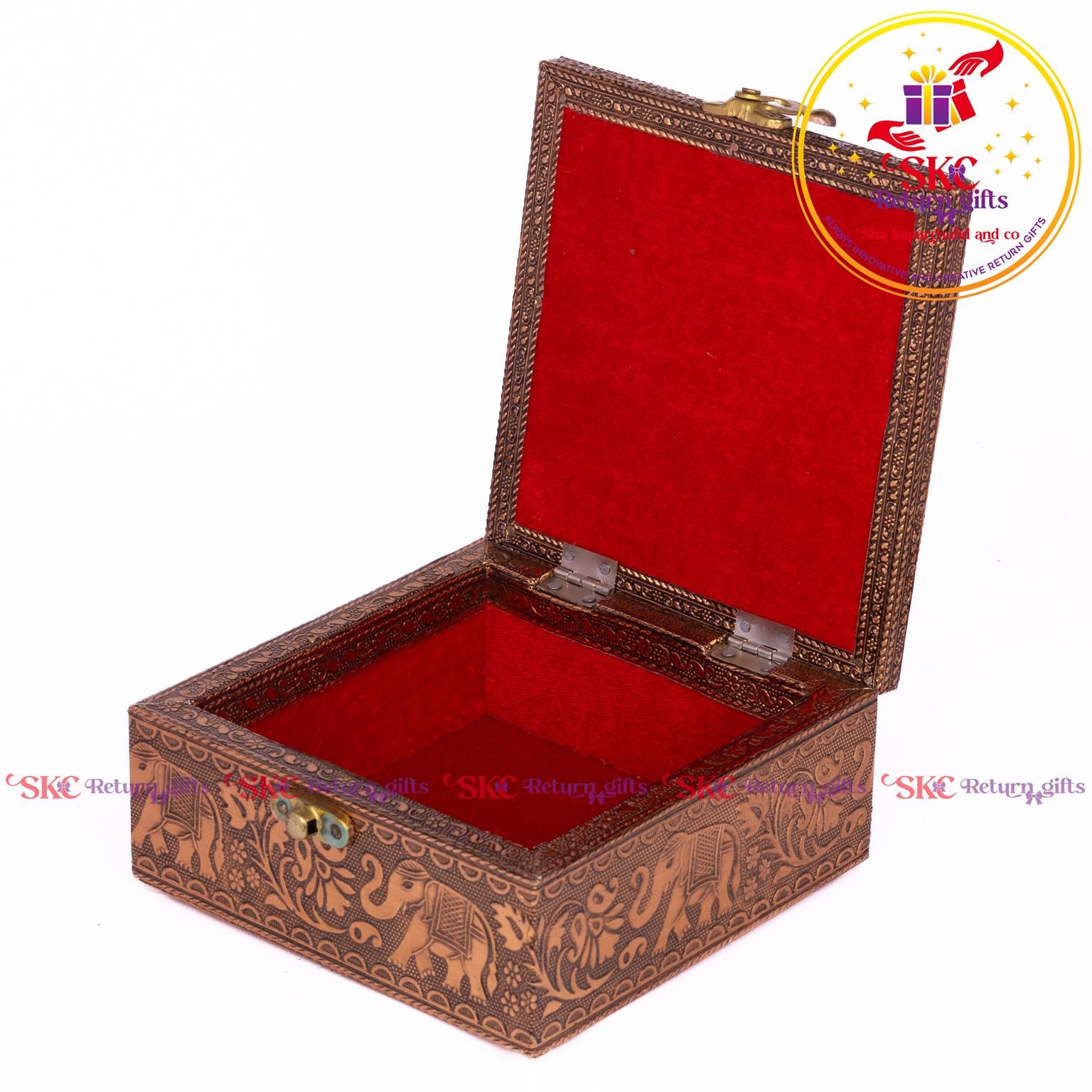 Elevate your return gifts with our exquisite collection of pooja and jewel boxes, designed to be both functional and enchanting. Crafted with intricate detailing and inspired by traditional artistry, these boxes are perfect for storing. Pooja items i, jewelry, or cherished treasures. A blend of cultural heritage and modern elegance, . Delight your guests with a gift that symbolizes both utility and timeless beauty.