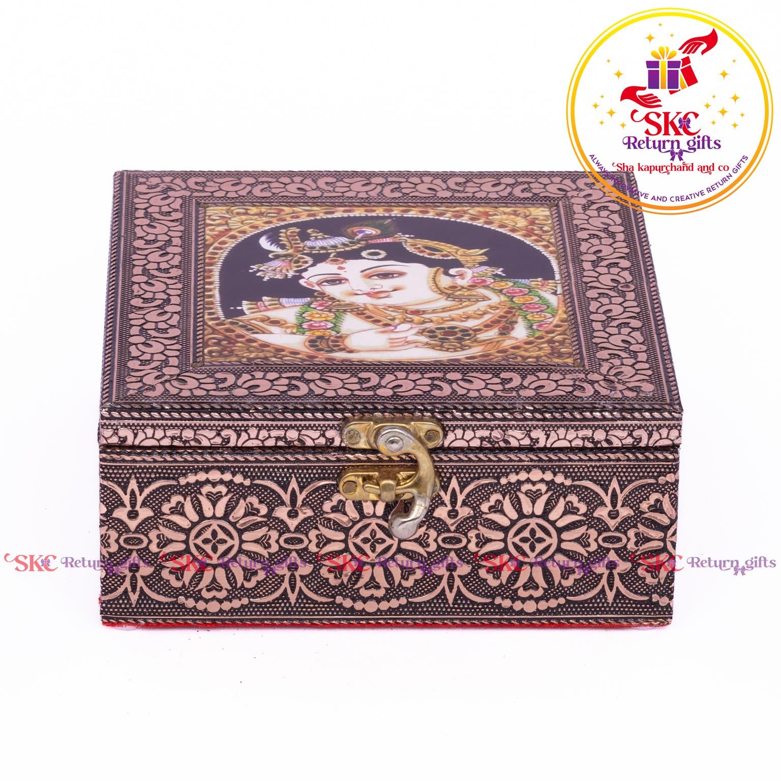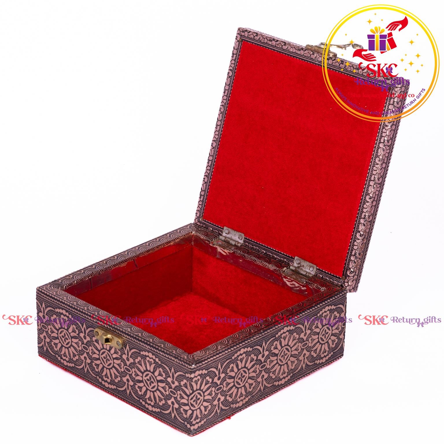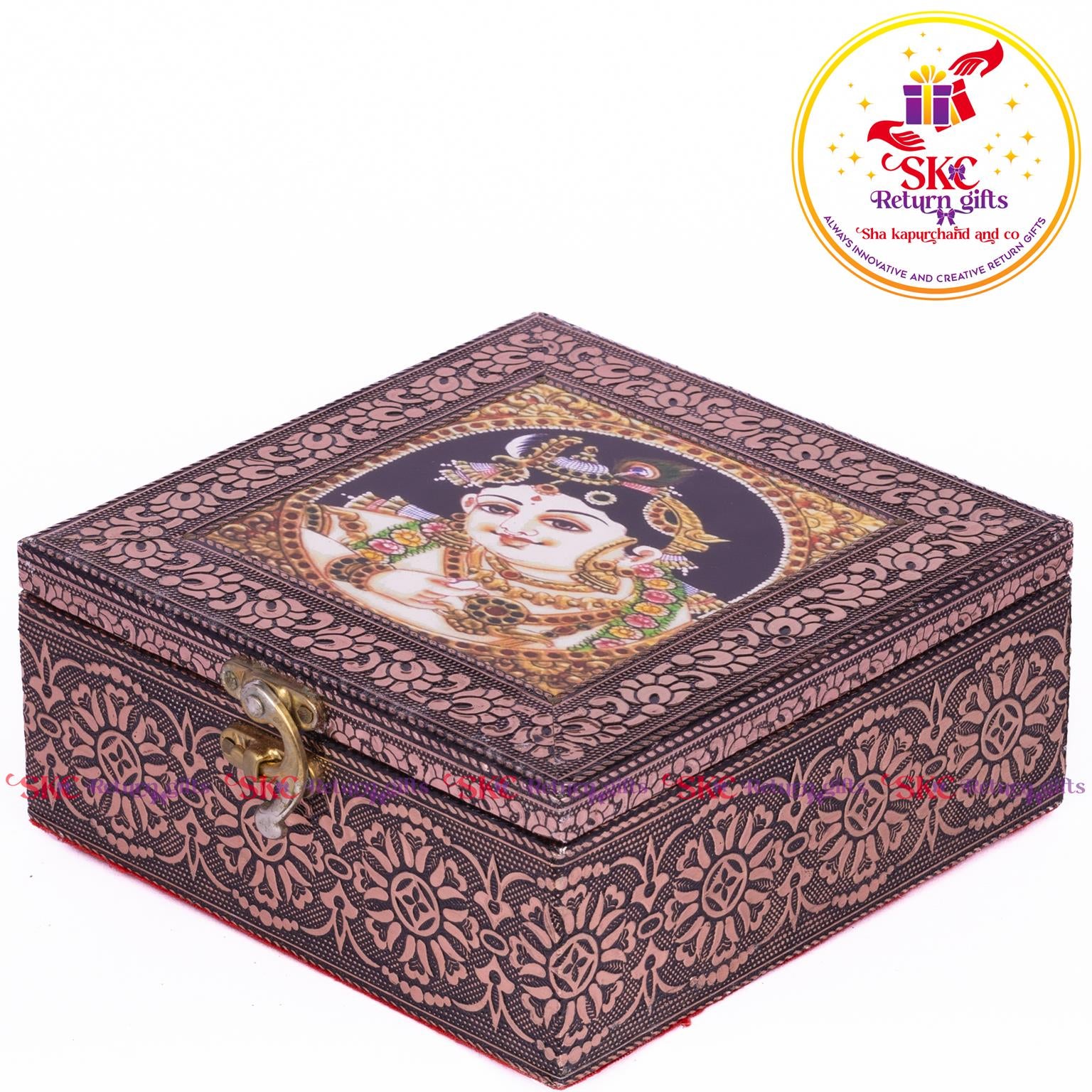 Elevate your return gifts with our exquisite collection of pooja and jewel boxes, designed to be both functional and enchanting. Crafted with intricate detailing and inspired by traditional artistry, these boxes are perfect for storing. Pooja items i, jewelry, or cherished treasures. A blend of cultural heritage and modern elegance, . Delight your guests with a gift that symbolizes both utility and timeless beauty.