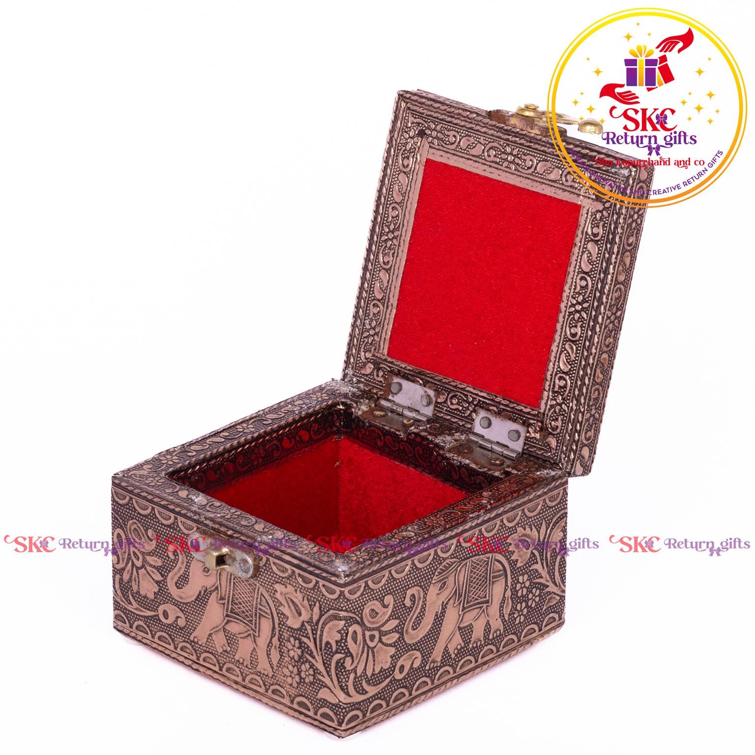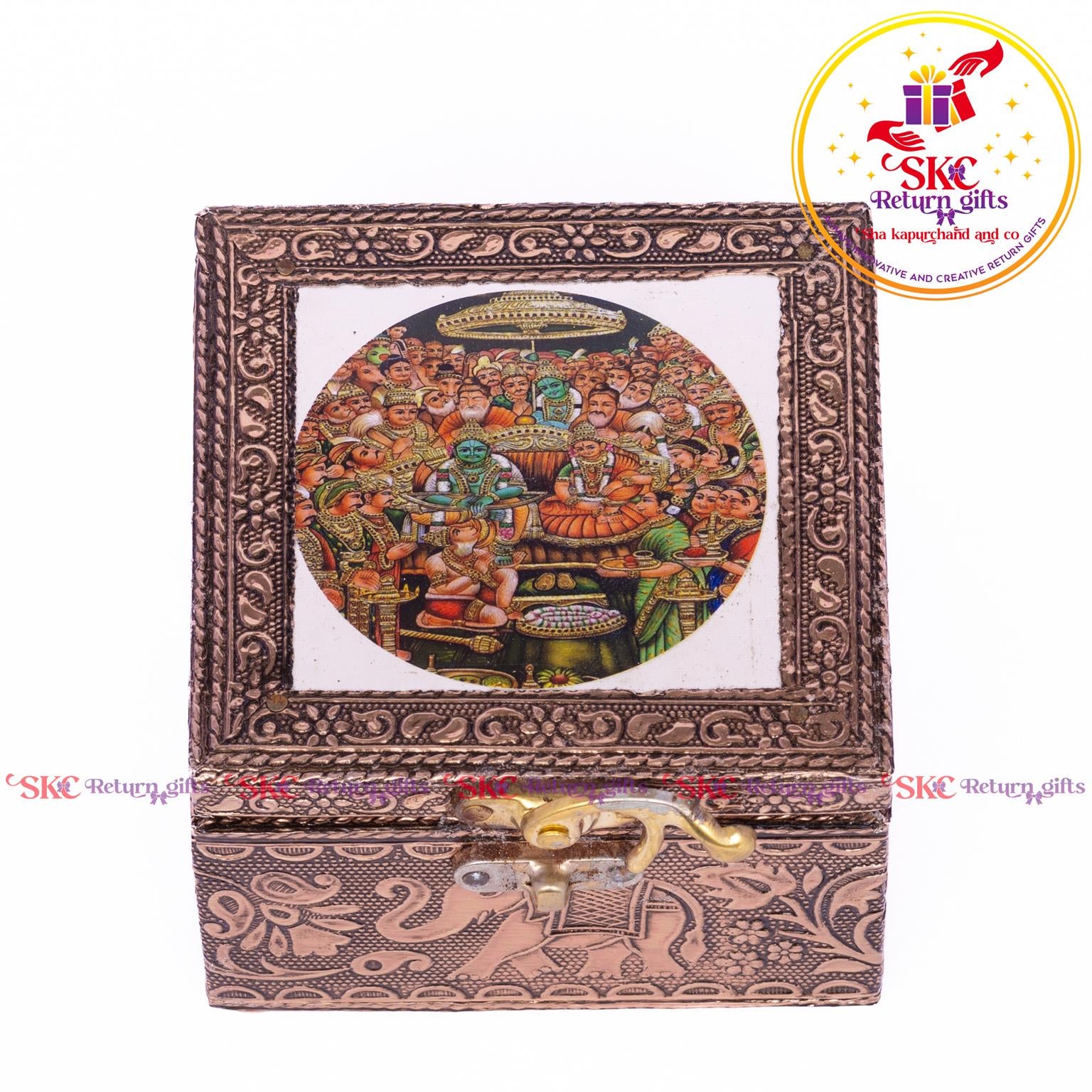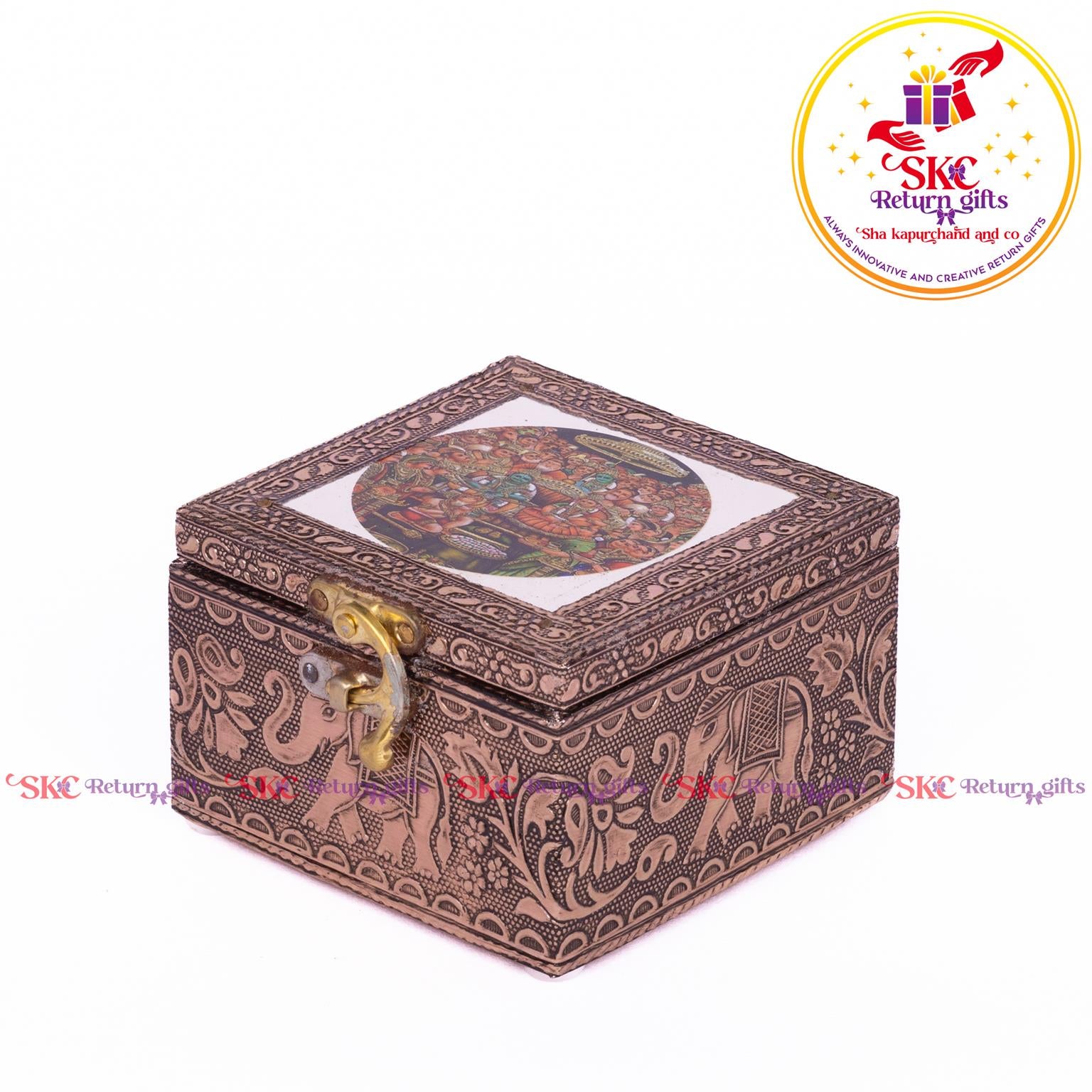 Elevate your return gifts with our exquisite collection of pooja and jewel boxes, designed to be both functional and enchanting. Crafted with intricate detailing and inspired by traditional artistry, these boxes are perfect for storing. Pooja items i, jewelry, or cherished treasures. A blend of cultural heritage and modern elegance, . Delight your guests with a gift that symbolizes both utility and timeless beauty.